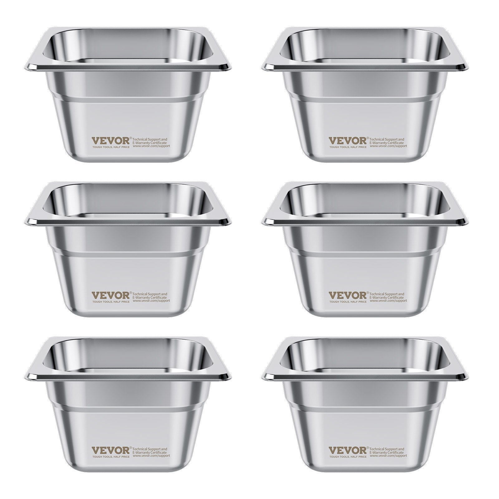 Dampfgarbehälter aus Edelstahl, 1/6 Größe x 100 mm tief, 1,7 l Tischdampfgarbehälter, wiederverwendbar, rostfrei, mit Antihaftbeschichtung, für Gastronomiebedarf, Catering, Zuhause, Partys, Restaurants, Hotels, Buffets, 6er-Pack