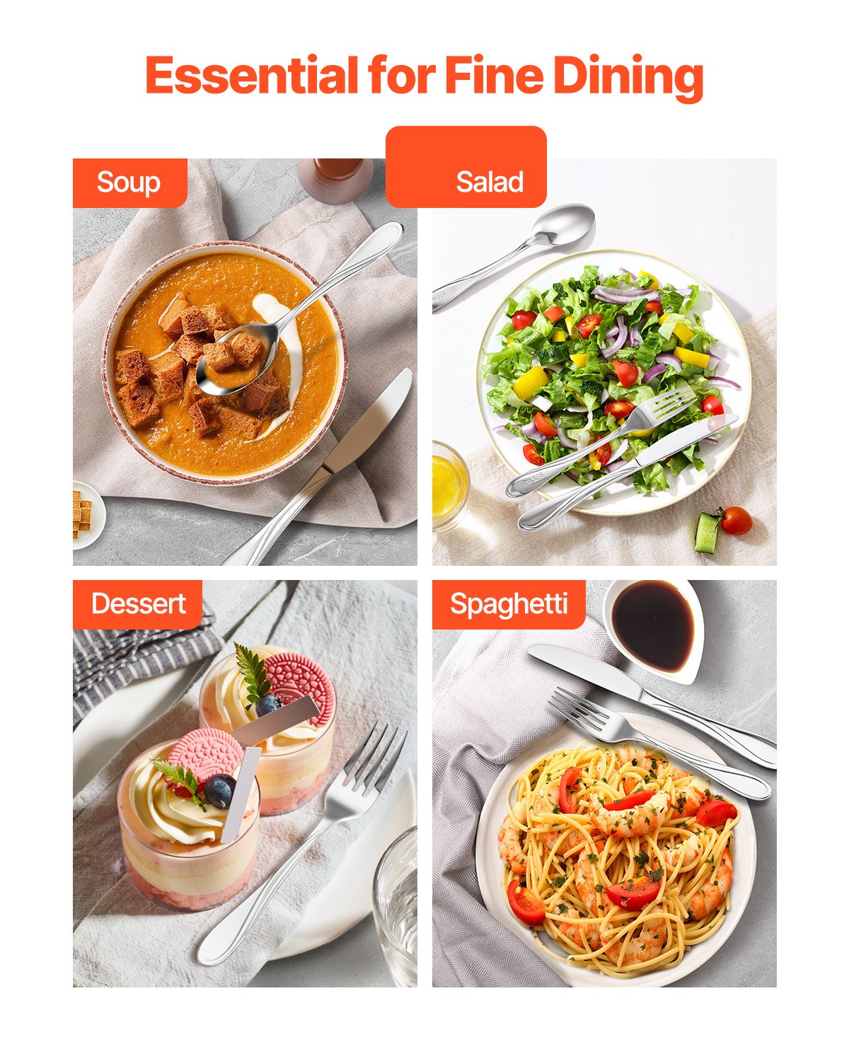 - Vielseitig einsetzbar: Dieses elegante und robuste Edelstahl-Besteckset ist eine praktische und stilvolle Wahl für Zuhause, Hotel, Küche, Partys, Camping, Picknicks, Restaurants, Hochzeiten und vieles mehr. Es verleiht Ihrem Leben einen Hauch von Eleganz und ist ein perfektes Einzugsgeschenk oder eine ideale Geschenkidee für jeden Anlass.