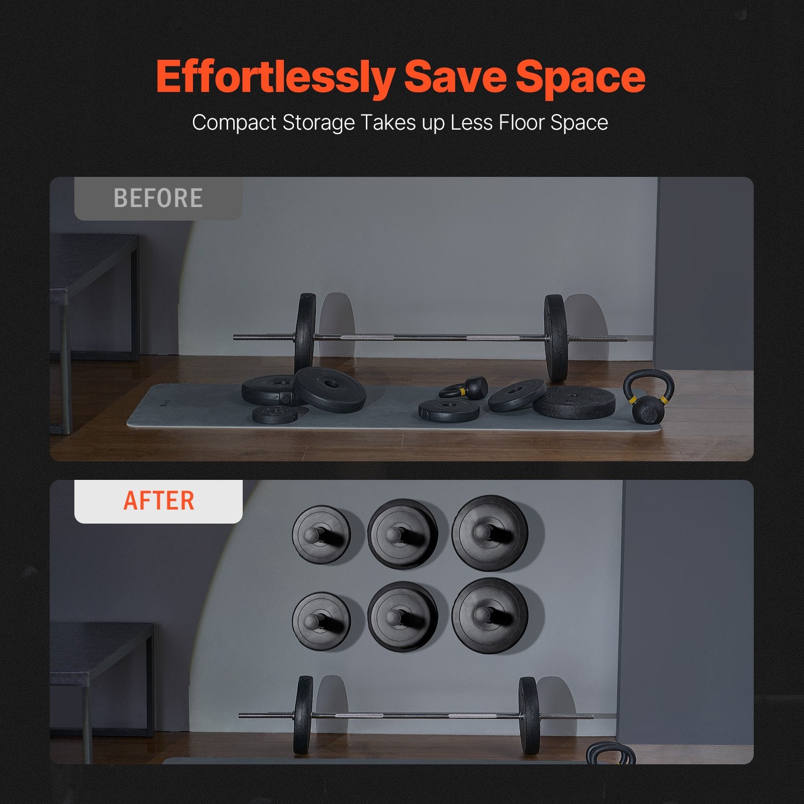 - Praktische Aufbewahrung, platzsparend: Die wandmontierte Hantelscheibenhalterung spart Stellfläche und optimiert die Raumausnutzung. Ob im Fitnessstudio oder im Heimtrainingsbereich – Sie können sich in einer komfortableren Umgebung voll auf Ihr Training konzentrieren.