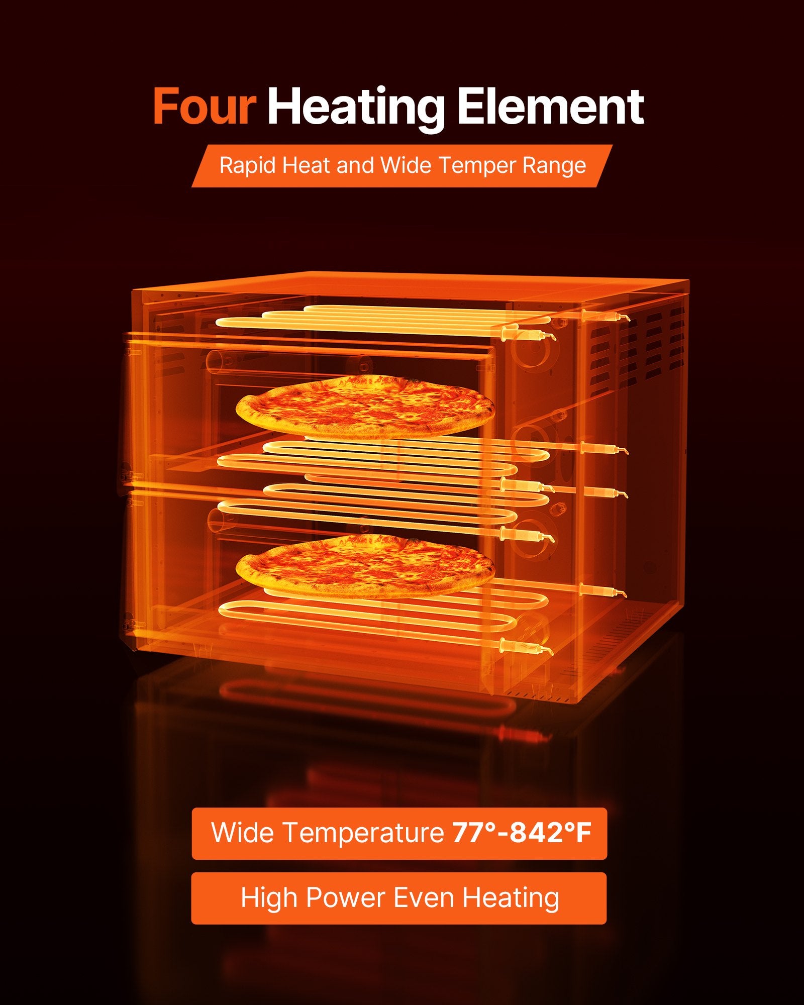 - Großzügiges Doppeldeck-Design mit unabhängiger Steuerung: Der VEVOR 45,7 cm (18 Zoll) große elektrische Gewerbepizzaofen verfügt über ein oberes und ein unteres Deck mit separaten Timern, Temperaturreglern und integrierten Thermometern. Dank des großen Fassungsvermögens können Sie vier 23 cm (9 Zoll) große Pizzen oder eine 45,7 cm (18 Zoll) große Pizza gleichzeitig backen – jede perfekt gebacken.