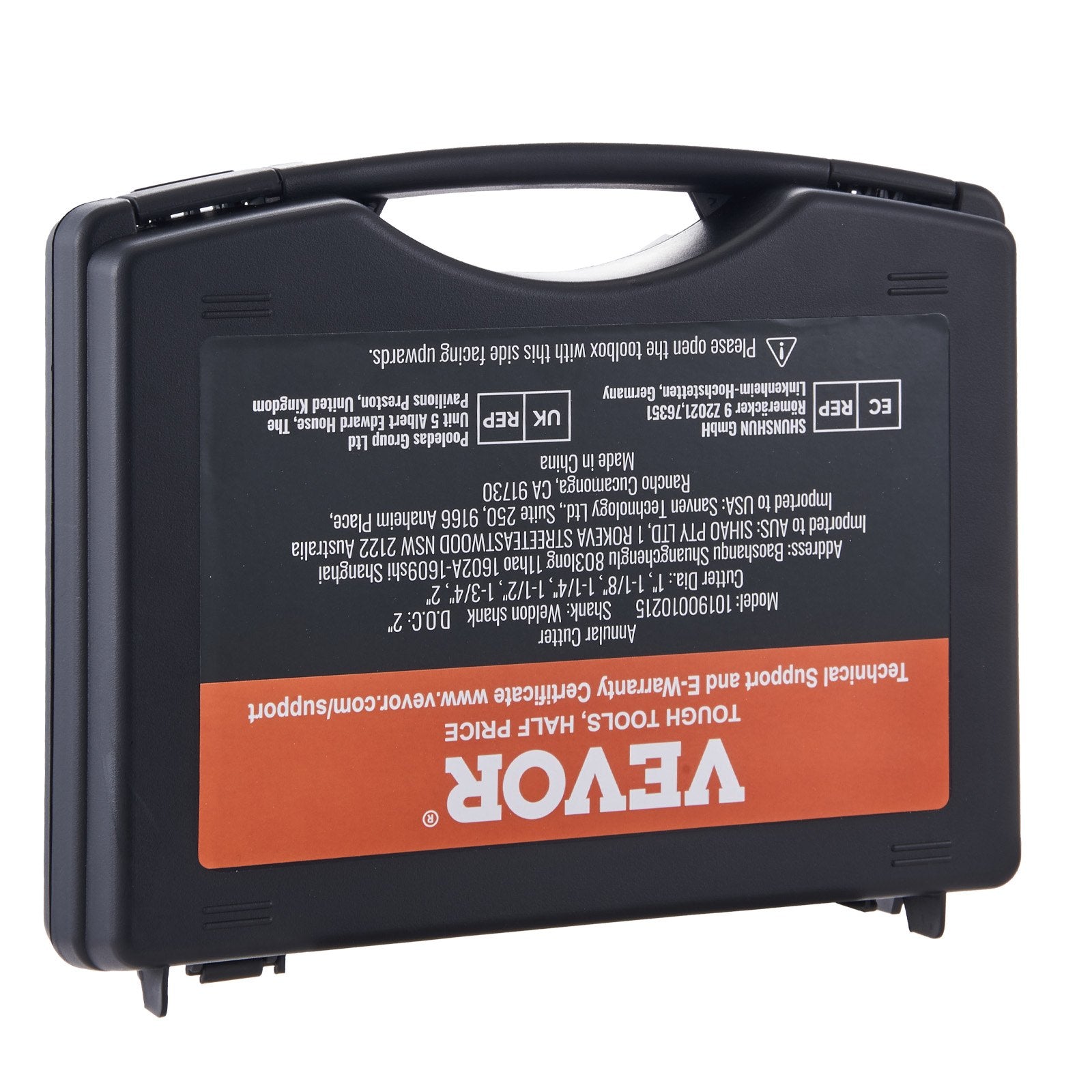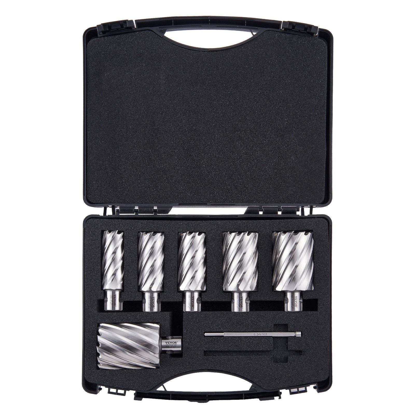 Ringbohrer-Set, 6-teilig, Universal-Schaft-Magnetbohrer, 5,1 cm Schnitttiefe, 2,5 bis 5,1 cm Schnittdurchmesser, M2AL-Schnellarbeitsstahl, mit 2 Zentrierstiften und Tragekoffer, zur Verwendung mit Magnetbohrmaschinen