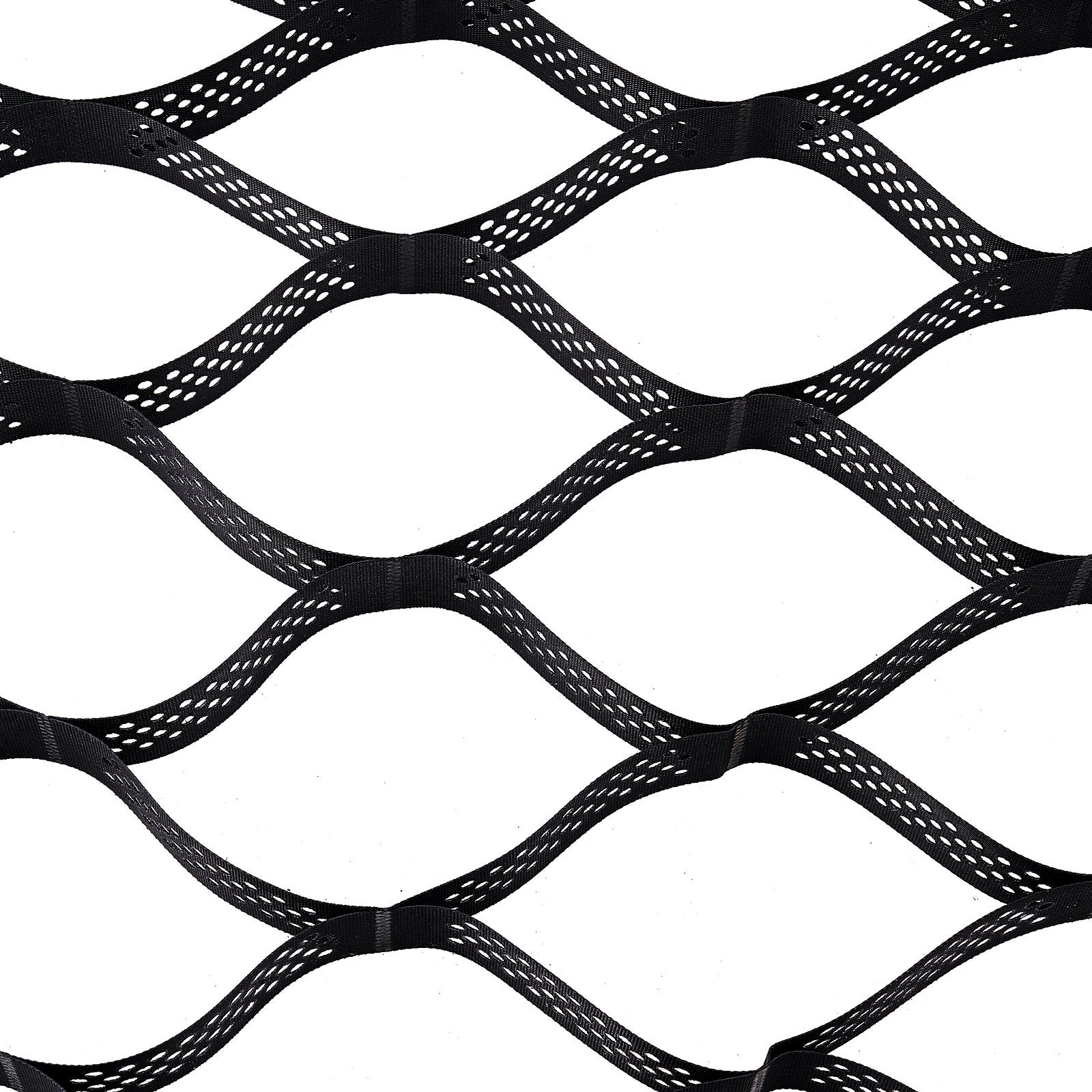 - Zuschneidbares HDPE: Unser Geogitter besteht aus recycelbarem Polyethylen hoher Dichte (HDPE) mit einer Stärke von 1,5 mm und bietet hervorragende Beständigkeit gegen leichte Oxidation, Alterung und Säure-/Laugenkorrosion unter allen Witterungsbedingungen. Dank seiner Zugfestigkeit und Flexibilität sind individuelle Größen möglich, z. B. durch Zuschneiden, Verbinden und Anpassen der geometrischen Abmessungen. Es lässt sich leicht ausbreiten oder zusammenfalten und ist somit einfach zu transportieren und zu lagern.