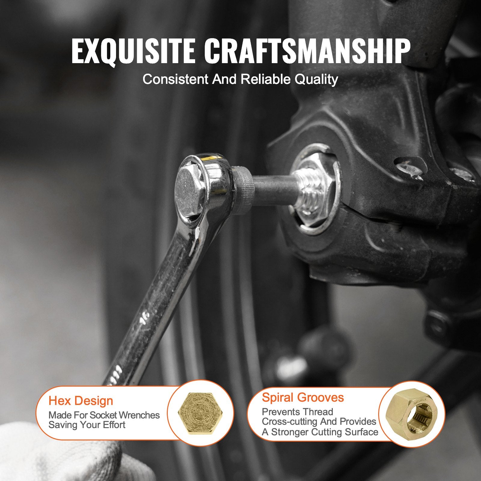 - Umfassendes Größen- und farbcodiertes Design: Das Gewindeschneidset enthält drei Standards (UNF, UNC und metrisch) mit Farbcodierung zur schnellen visuellen Identifizierung. UNC (Silber): 5/8"-11, 9/16"-12, 1/2"-13, 7/16"-14, 3/8"-16, 5/16"-18, 1/4"-20; UNF (Schwarz): 5/8"-18, 9/16"-18, 1/2"-20, 7/16"-20, 3/8"-24, 5/16"-24, 1/4"-28; Metrisch (Gold): M14x1,5, M12x1,75, M12x1,5, M12x1,25, M11x1,5, M10x1,5, M10x1,25, M10x1,0, M8x1,5, M8x1,25, M8x1,0, M7x1,0, M6x1,25, M6x1,0.