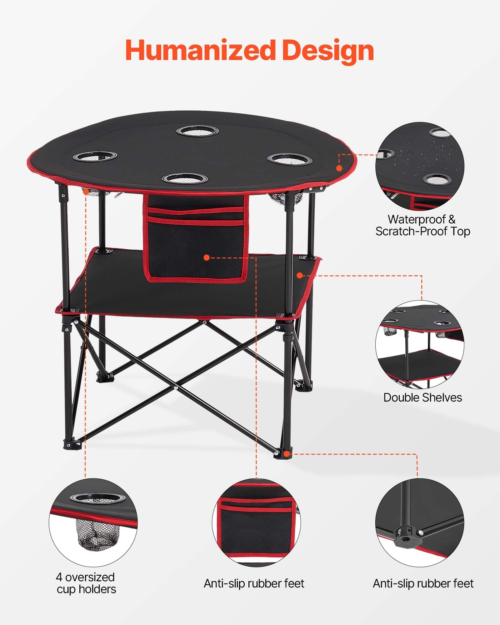 - Optimale Aufbewahrungsmöglichkeiten für Abenteuer: Enthält 4 extragroße Getränkehalter und zwei Ebenen für Besteck, Handys und Snacks. Der praktische Beistelltisch sorgt für Ordnung und hält alles griffbereit für Outdoor-Abenteuer.