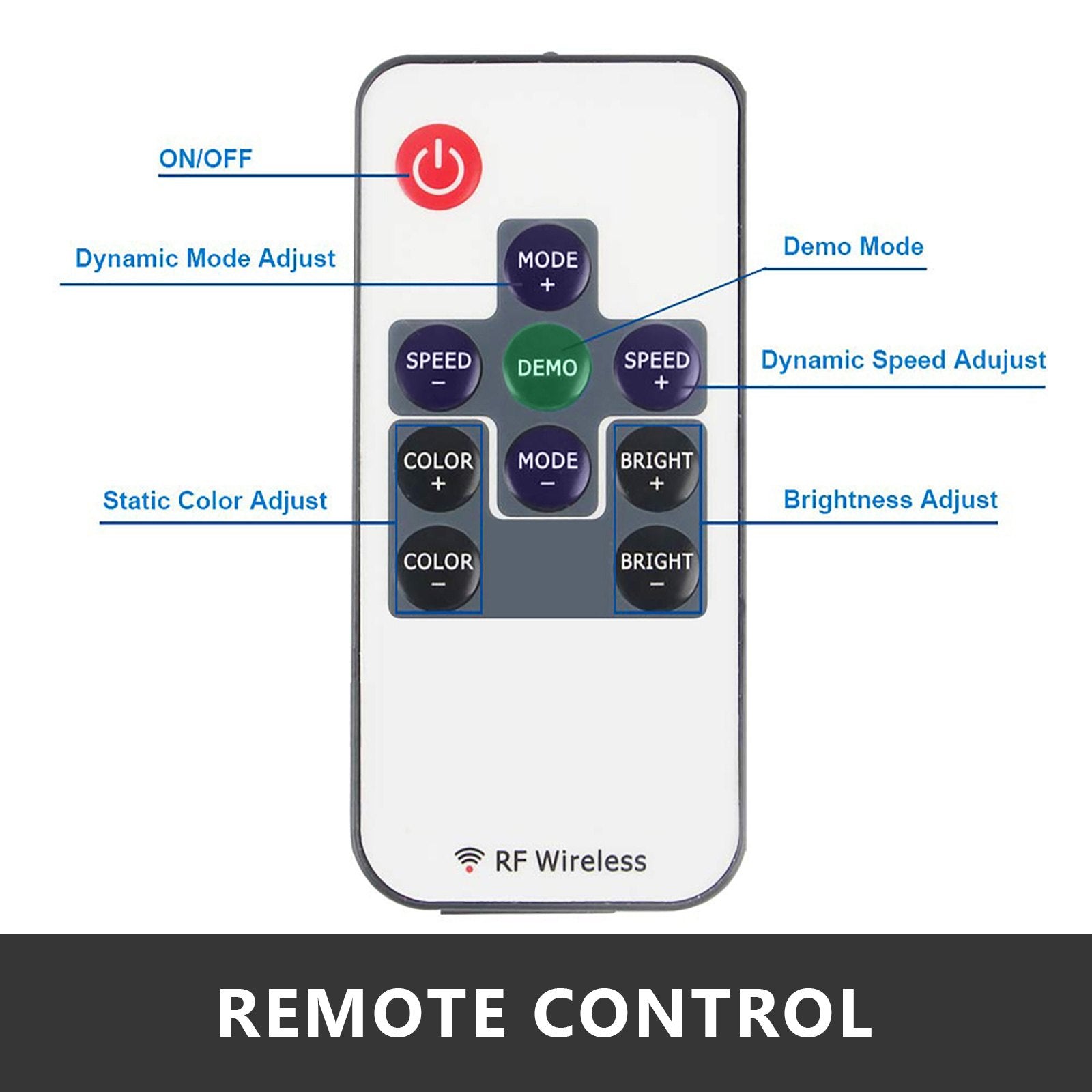 - 【LED-Streifenlicht】-18 verschiedene Farben, die über eine Funkfernbedienung geändert werden können. Die Helligkeit, die Farbe und die Geschwindigkeit der Modi sind einstellbar, um ein optimales Erlebnis zu gewährleisten.