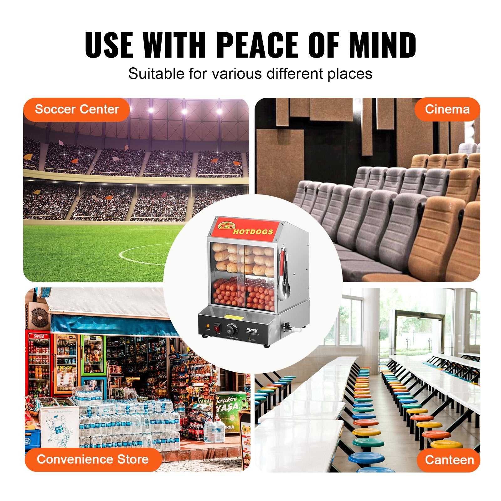 - Temperaturregelung mit Drehknopf: Machen Sie sich Sorgen, dass Ihre Hotdogs kalt werden? Keine Sorge! Hotdogs und Brötchen werden durch internen Dampf erwärmt, sodass alles warm bleibt. Dank des breiten Temperaturbereichs von 30–85 °C (86–185 °F) haben Ihre Speisen immer die perfekte Temperatur. Die Temperatur lässt sich ganz einfach per Drehknopf einstellen.