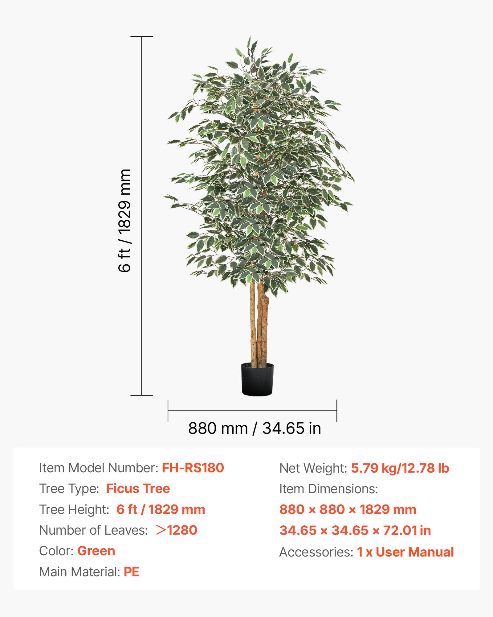 Künstlicher Ficus (180 cm) mit schwarzem Topf, hohe Kunstpflanze mit naturgetreuem Holzstamm und realistischen grünen Blättern, dekorativer Seidenbaum für den Innenbereich, ideal für Zuhause, Büro, Wohnzimmer oder als Eckdekoration.