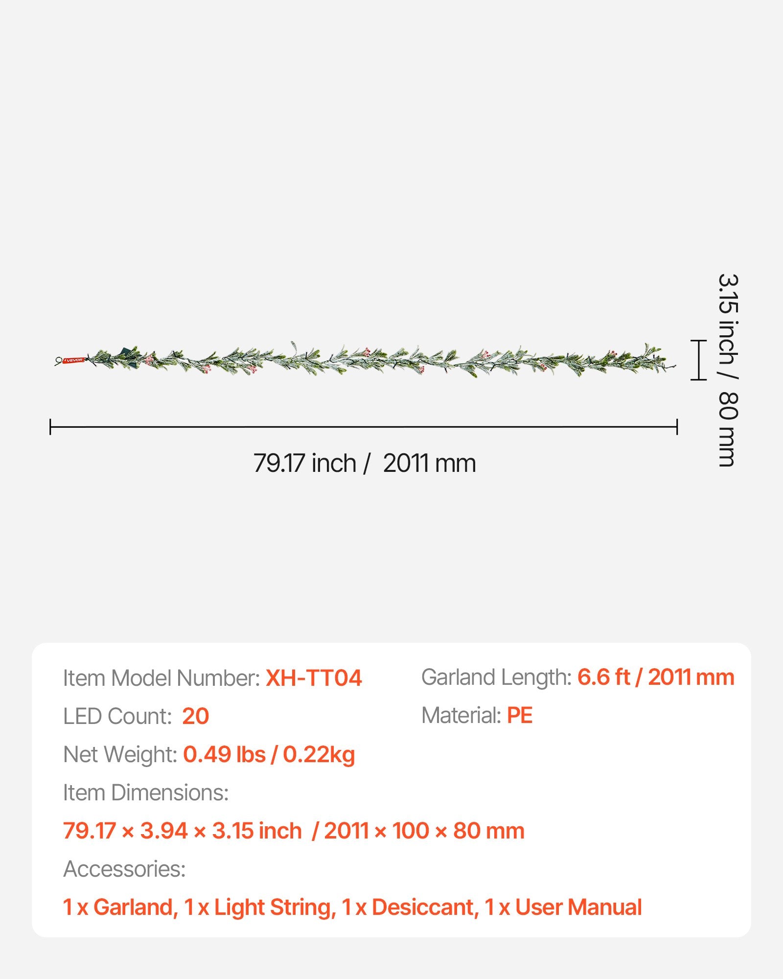 - Girlandenlänge: 6,6 Fuß / 2011 mm