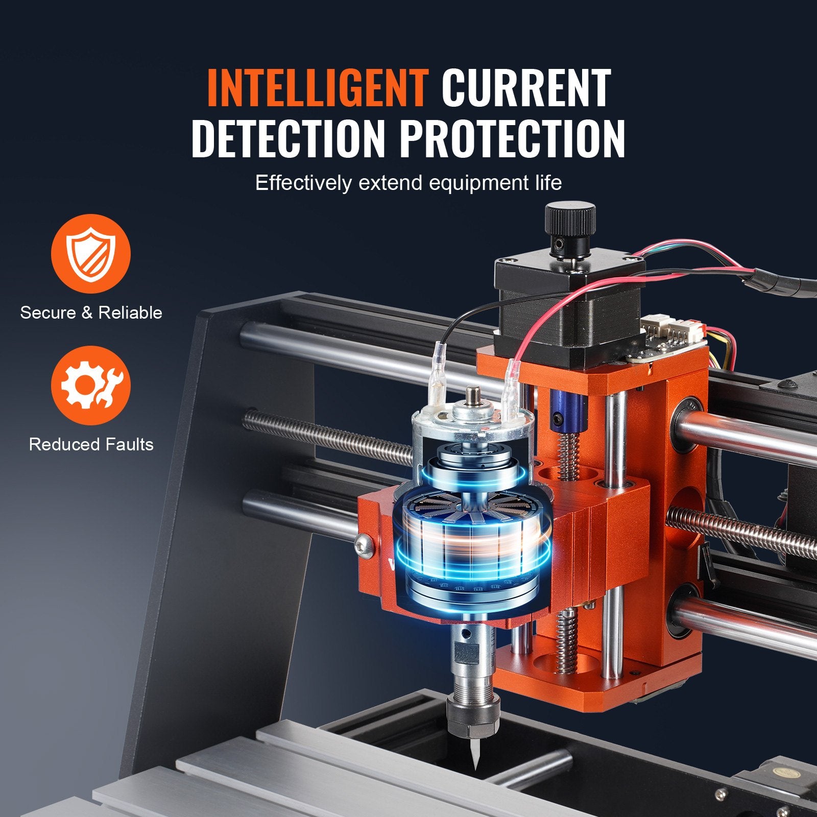 - Sicherheit und Zuverlässigkeit, auf die Sie sich verlassen können: Sicherheit hat oberste Priorität. Unsere CNC-Fräsmaschine ist mit einem Überstromschutz ausgestattet, der vor Fehlfunktionen schützt und einen reibungslosen Betrieb gewährleistet. Mit einer Lebensdauer von über 5000 Stunden ist sie ein zuverlässiger Partner, der Zeit und Kreativität überdauert.