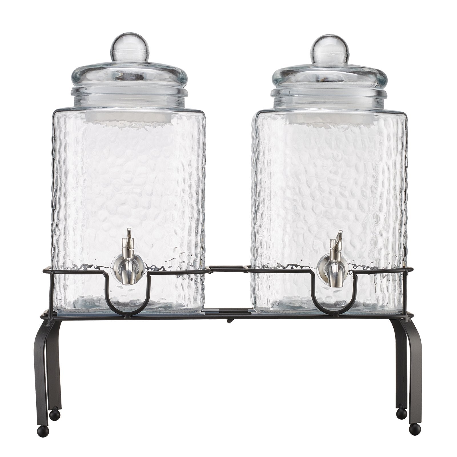 Getränkespender, 2er-Pack 5,5-Liter-Getränkespender für Partys, Saftspender aus Glas mit Metallständer, Edelstahl-Zapfhahn, Eistee-, Limonaden-, Saft- und Wasserspender für Partys