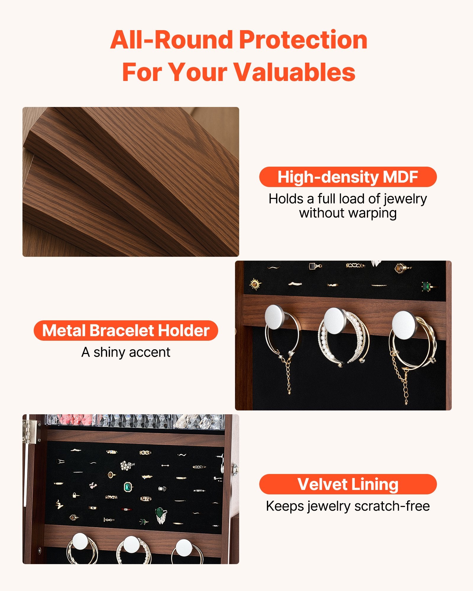 - Flexible Installation & Sicherheit: Der drehbare Schmuckschrank mit Spiegel wird mit einer detaillierten Montageanleitung geliefert. Das vertikale Design spart Platz und verleiht dem Schrank gleichzeitig Stil. Zwei Schlüssel zum Abschließen von Wertsachen und zum Schutz vor versehentlichem Zugriff sind im Lieferumfang enthalten.