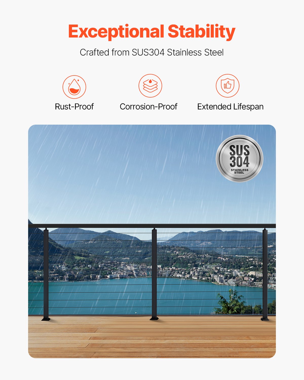 - Sturdy and Durable: Our cable handrail post is made of high-quality SUS304 stainless steel, offering excellent rust resistance and corrosion protection for long-lasting durability. However, it is not recommended for coastal applications