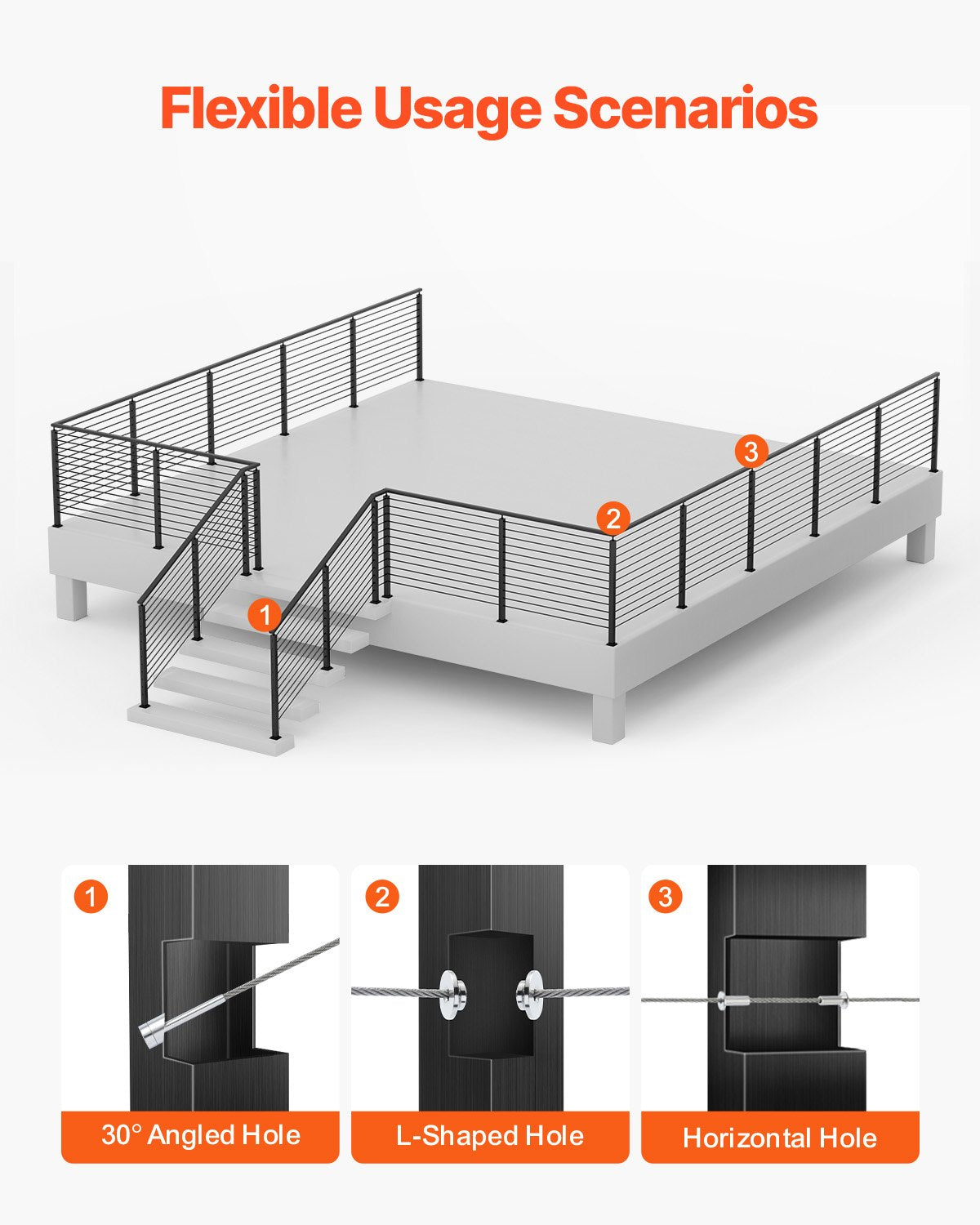 - Multi-Scene Protection: Our cable rail post is suitable for both indoor and outdoor protection, including decks, stairs, porches, fences, patios, balconies, gardens, residential buildings, commercial offices, hotels, garages, and more