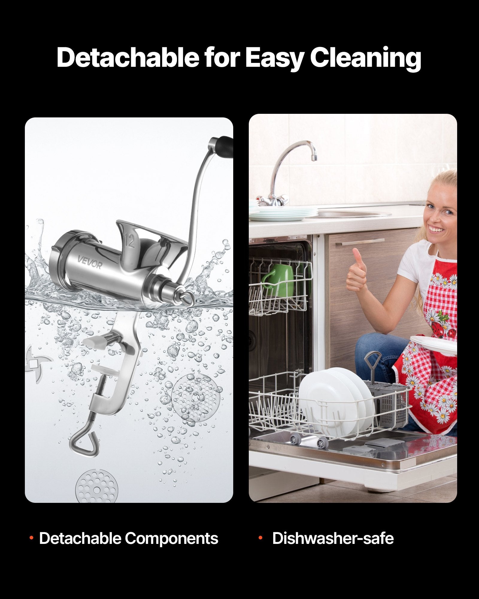 - One Meat Grinder, Endless Uses: VEVOR multifunctional manual meat grinder allows for easy vegetables and meat grinding to make meatballs, cookies, sausages, and more. It also comes with 5mm and 8mm cutting plates, 1 cutting cross blade, 1 sausage stuffing tube, 1 cookie attachment and push rod, catering to the diverse needs of different culinary creations.