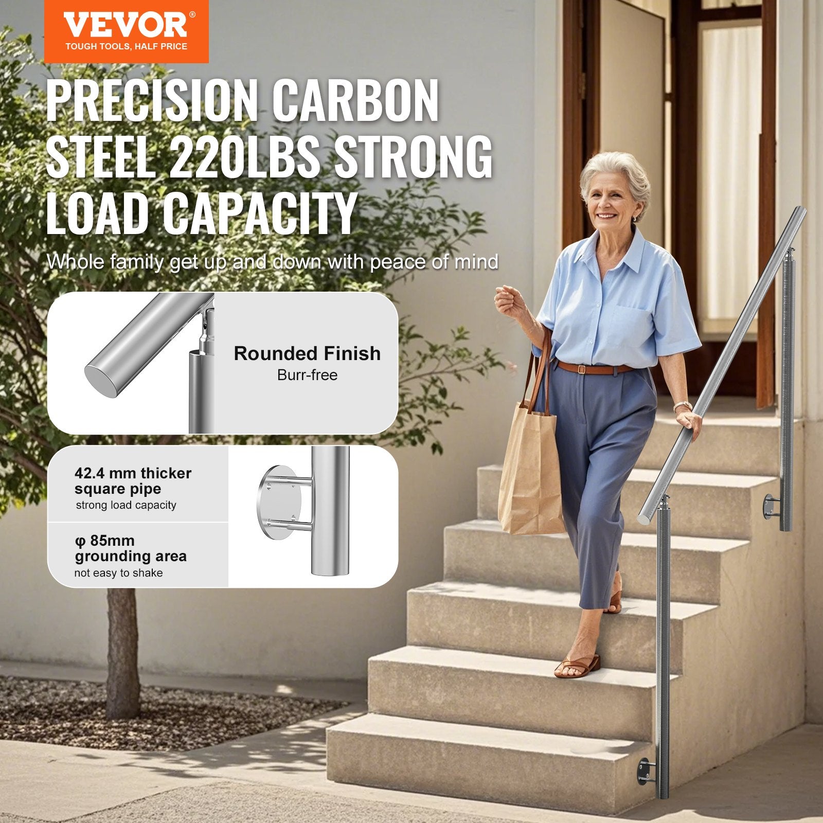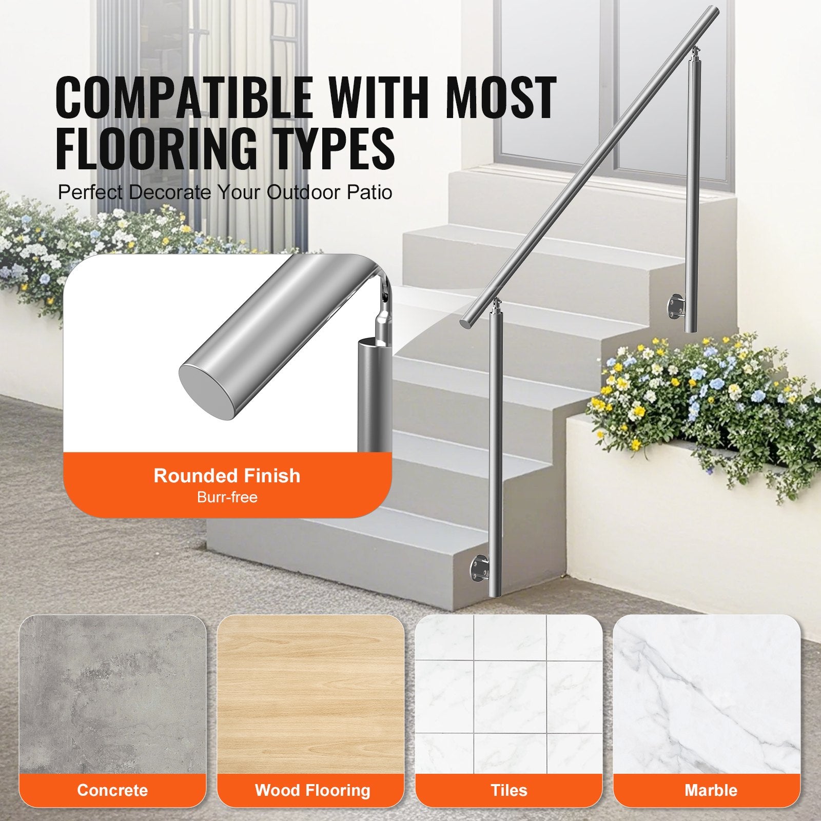 - Versatile Use: This outdoor stair railing can be installed on concrete, wood floors, tiles, marble, and other solid surfaces. Its unique design complements various stair types, ensuring both functionality and style.