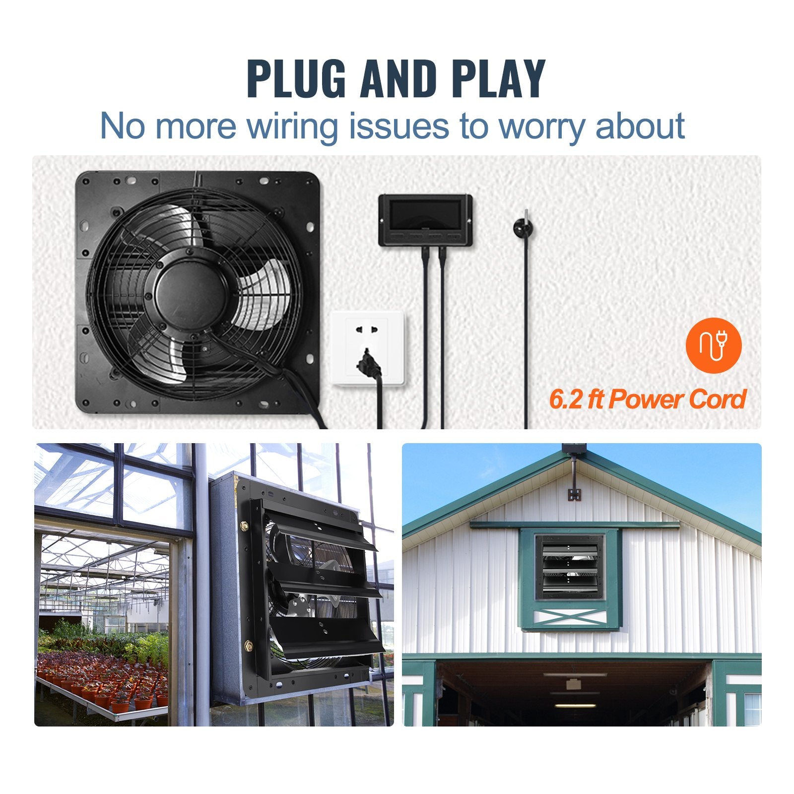 Shutter Exhaust Fan, 254mm with Temperature Humidity Controller, EC-motor, 843 CFM, Variable Speed Adjustable Wall Mount Attic Fan, Ventilation and Cooling for Greenhouses, Garages, Sheds