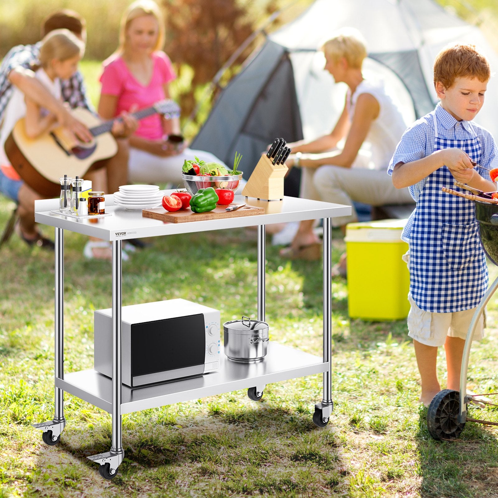 24 x 48 x 40 Inch Stainless Steel Work Table, Commercial Food Prep Worktable with Casters, Heavy Duty Prep Worktable, Metal Work Table with Adjustable Height for Restaurant, Home and Hotel