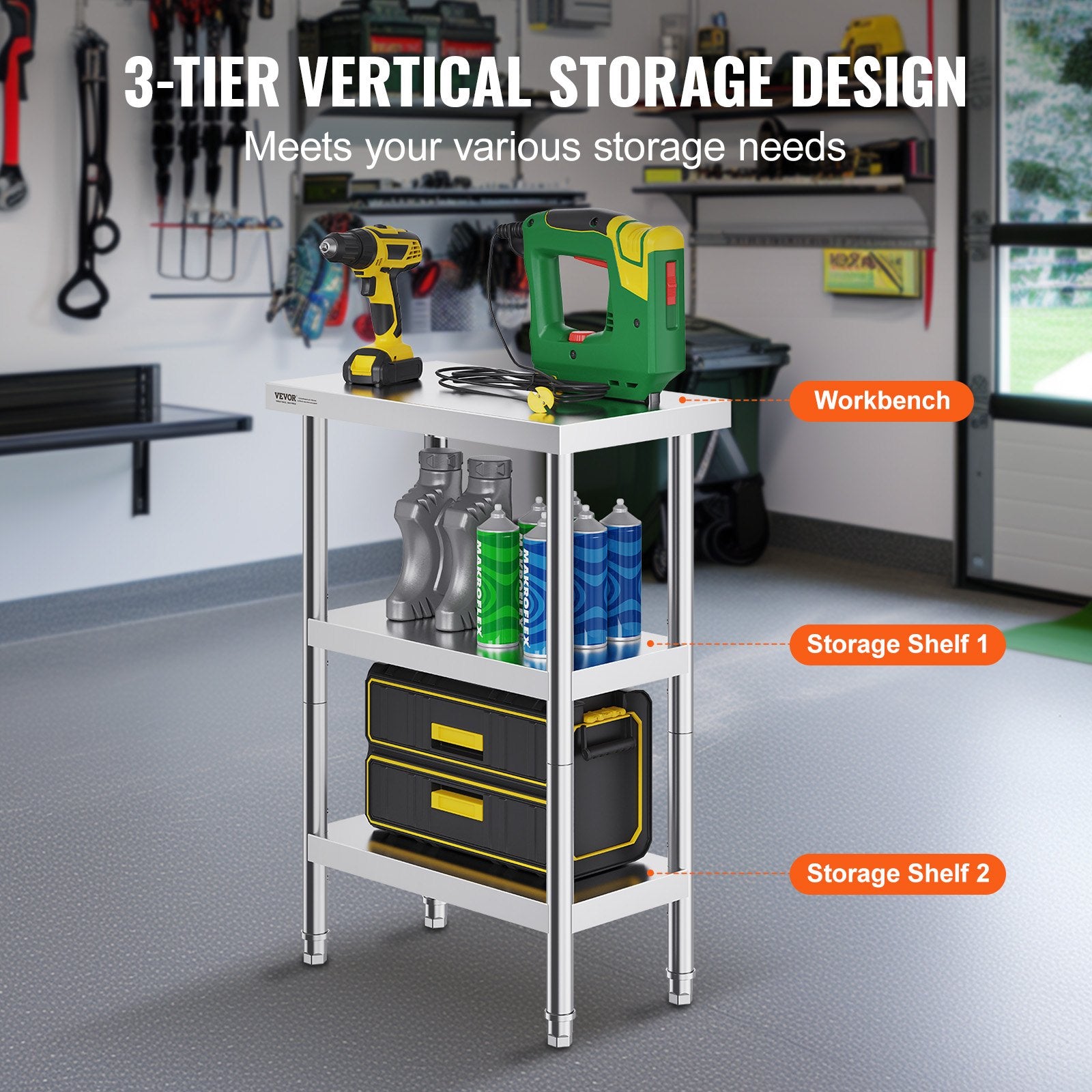 - Large Storage Capacity: The 3-tier design offers ample storage space, allowing you to make the most of your storage needs. With adjustable shelves, you can easily raise or lower the height by adjusting the screws to fit the size of the items you need to store.