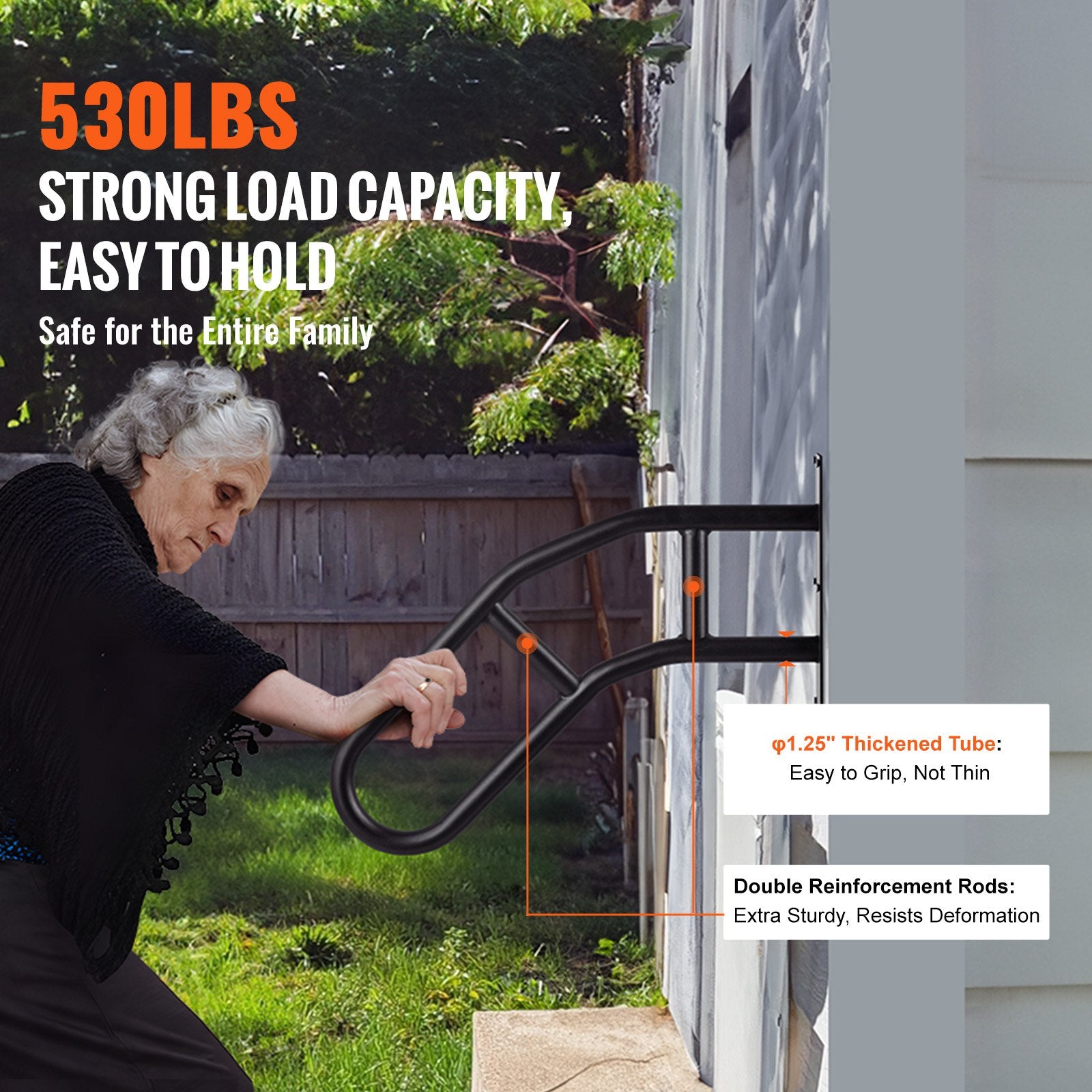 Handrails for Outdoor Steps, 29" Length Wall Mount Safety Railings for 1-3 Steps, U-Shaped Handrail with Matte Black Finished, Stair Handrails for Kids, Elderly, Pregnant Women, Disabled