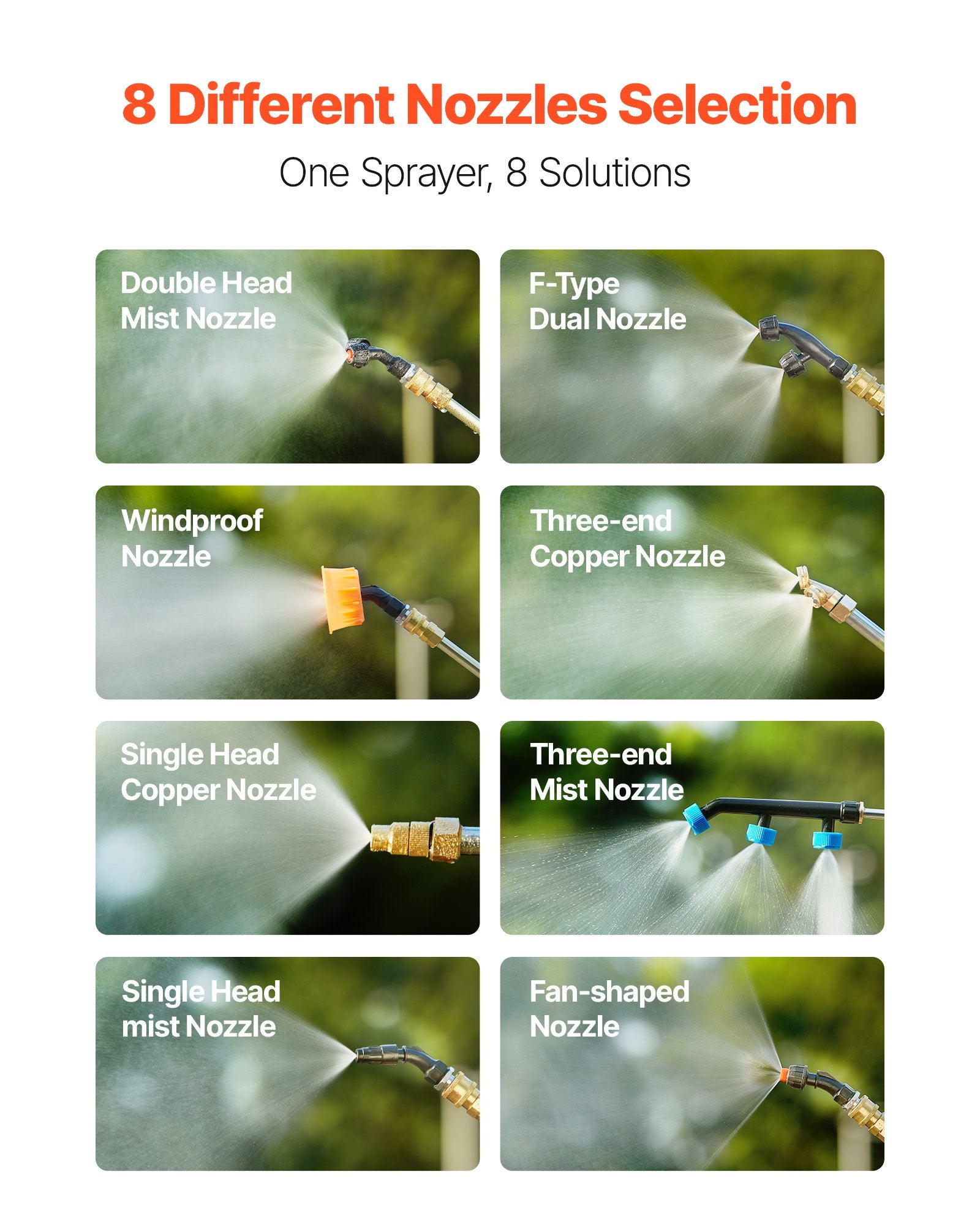 - Professional Accessories Kit: Includes 8 different nozzles and a dual-material spray rod, making the lawn sprayer versatile enough to tackle more than 10 spraying applications.