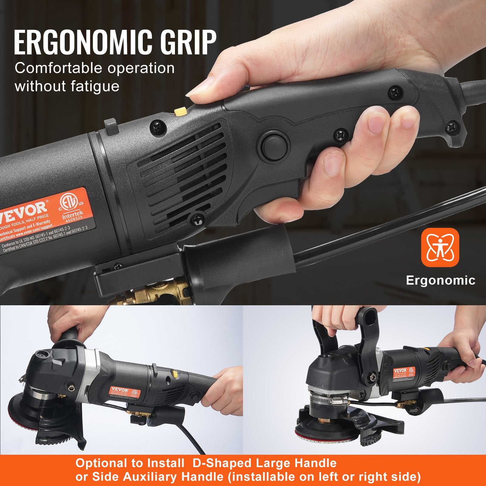 - User Comfort and Flexibility: Designed for optimal comfort, the lightweight build, effective heat dissipation, and soft grip ensure fatigue-free use. The adjustable side handle accommodates both left-handed and right-handed users, enhancing your experience with this wet polisher.