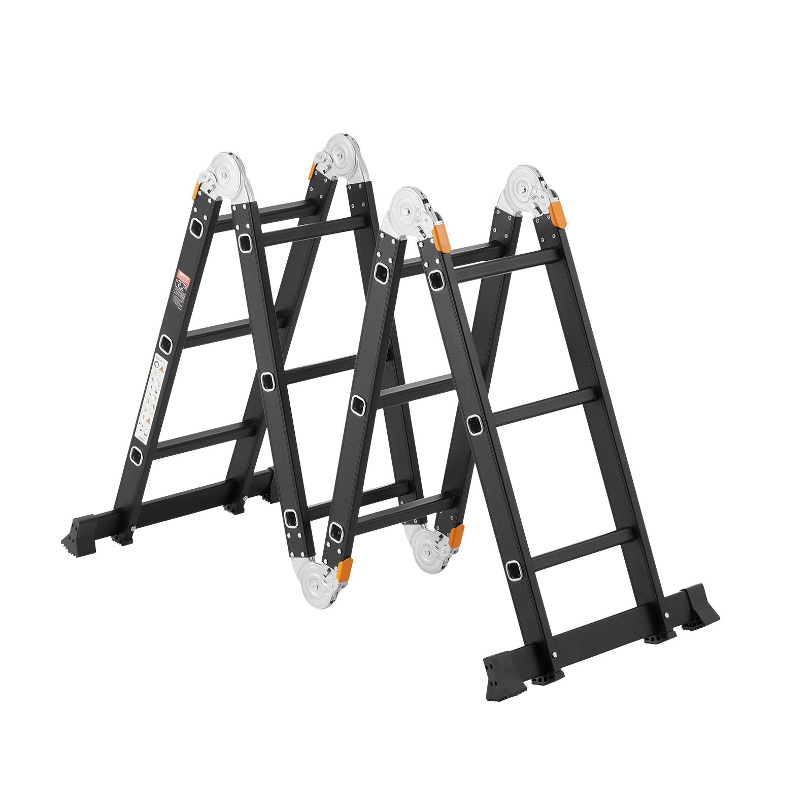 - 7-in-1 Versatility: This adjustable ladder can be folded into 7 shapes: A-frame, M-frame, ladder, L-shape, platform, folded, and straight. It is ideal for house cleaning, maintenance, home renovation, gardening, car washing, and more. It extends up to 139.8 inches, making it easy to reach rooftops. Additionally, it comes with two scaffolding platforms (34.1" x 23") for added safety and versatility during use.