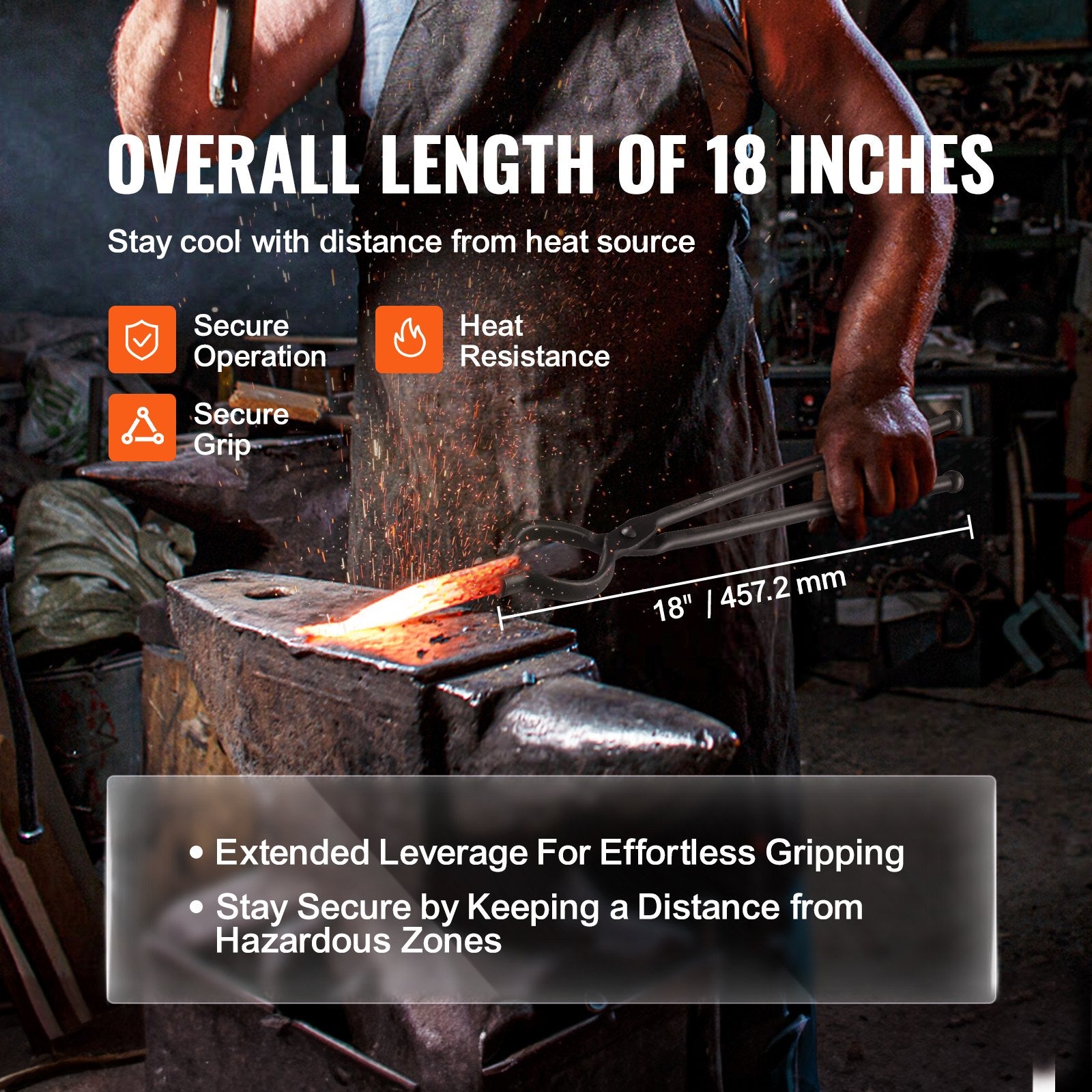 - 18" Extended Total Length: The uniquely designed long handle of the forge tongs ensures security by keeping users away from heat sources. Feel the difference as you work with confidence and precision without worrying about burns or discomfort.