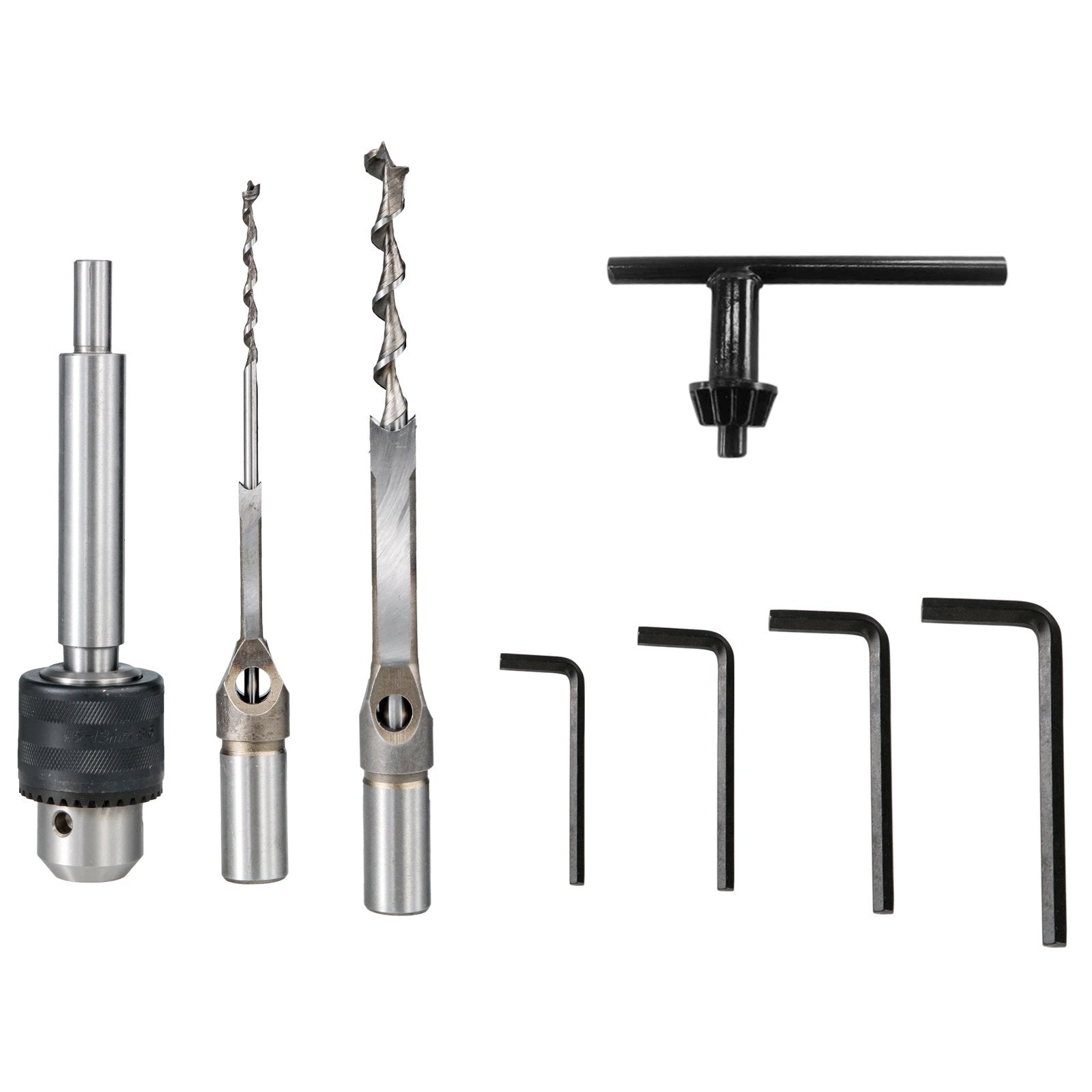 - Extra Accessories: The accessories of this product include a 13MM drill chuck, a 3/8 tenon cutter, a 19mm chisel holder, and four hex wrenches, which provide more possibilities for this tenon machine.