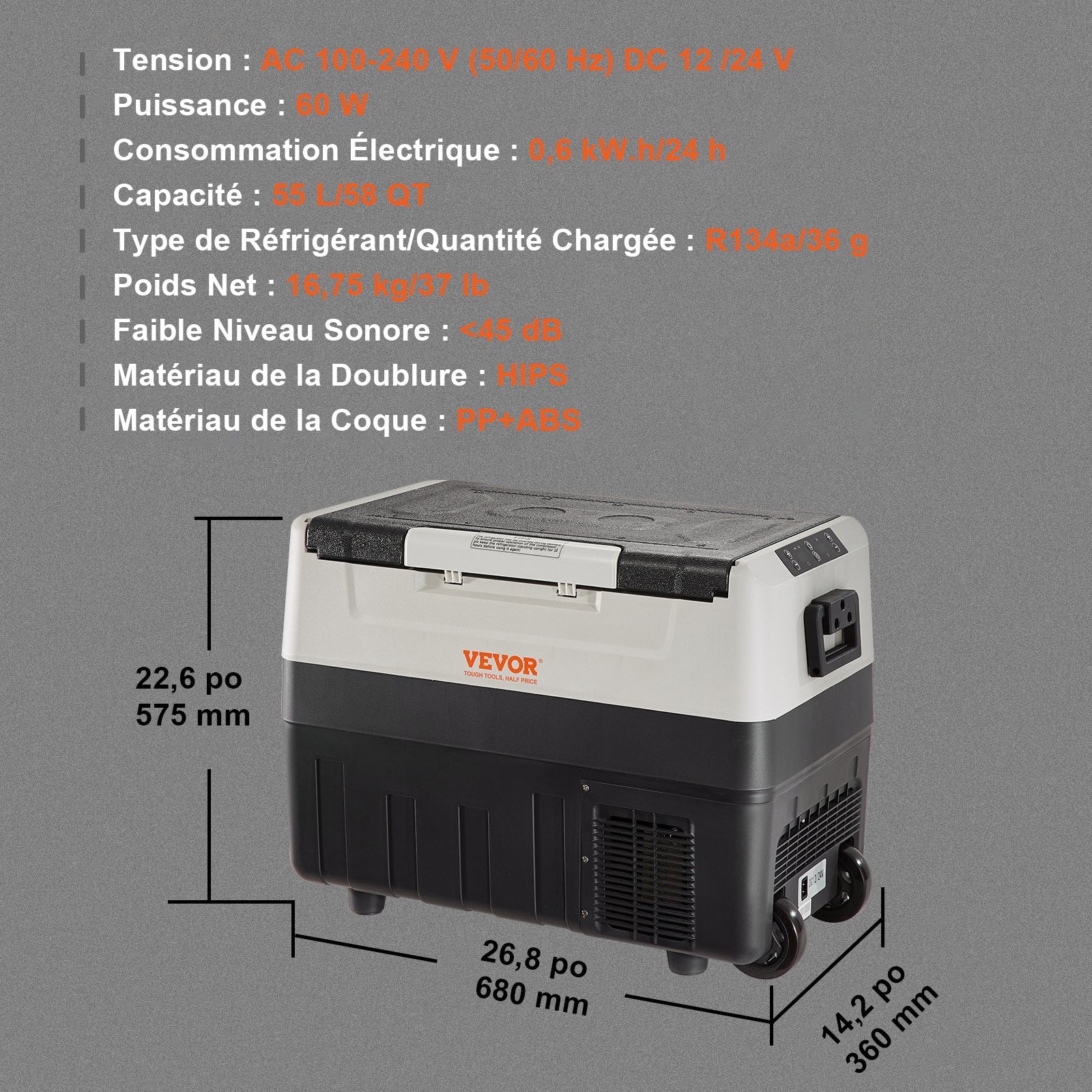 Portable Car Refrigerator Freezer Compressor 54.9 L Dual Zone for Car Home