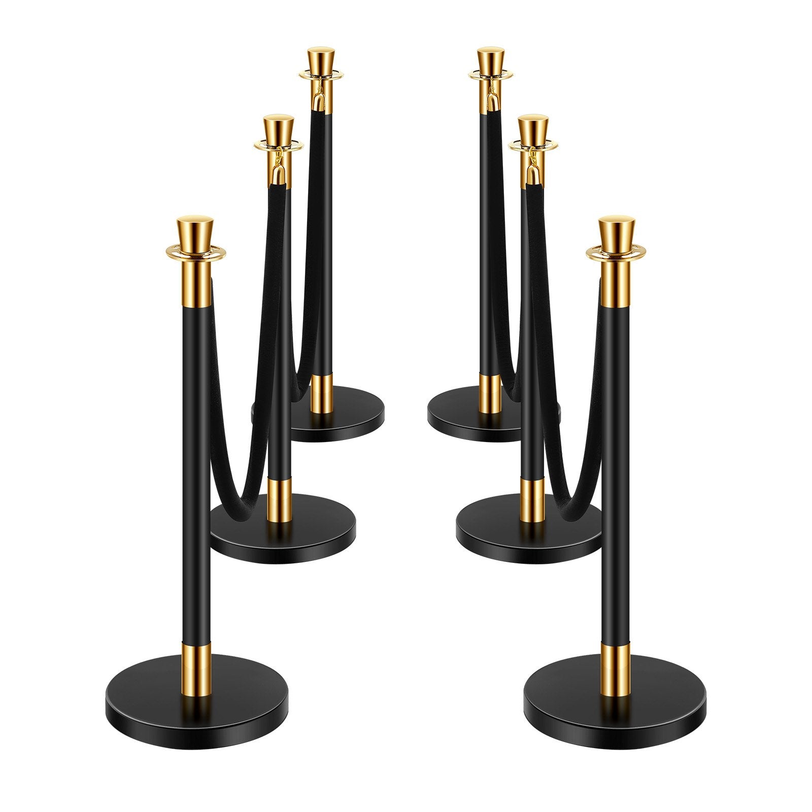 Stanchion Post, 6 Pcs Crowd Control Barrier with 4 Black Velvet Ropes, 5 ft Stainless Steel Stanchion Post Queue with Sand Injection Hollow Base for Theater, Party, Wedding, Exhibition, Black