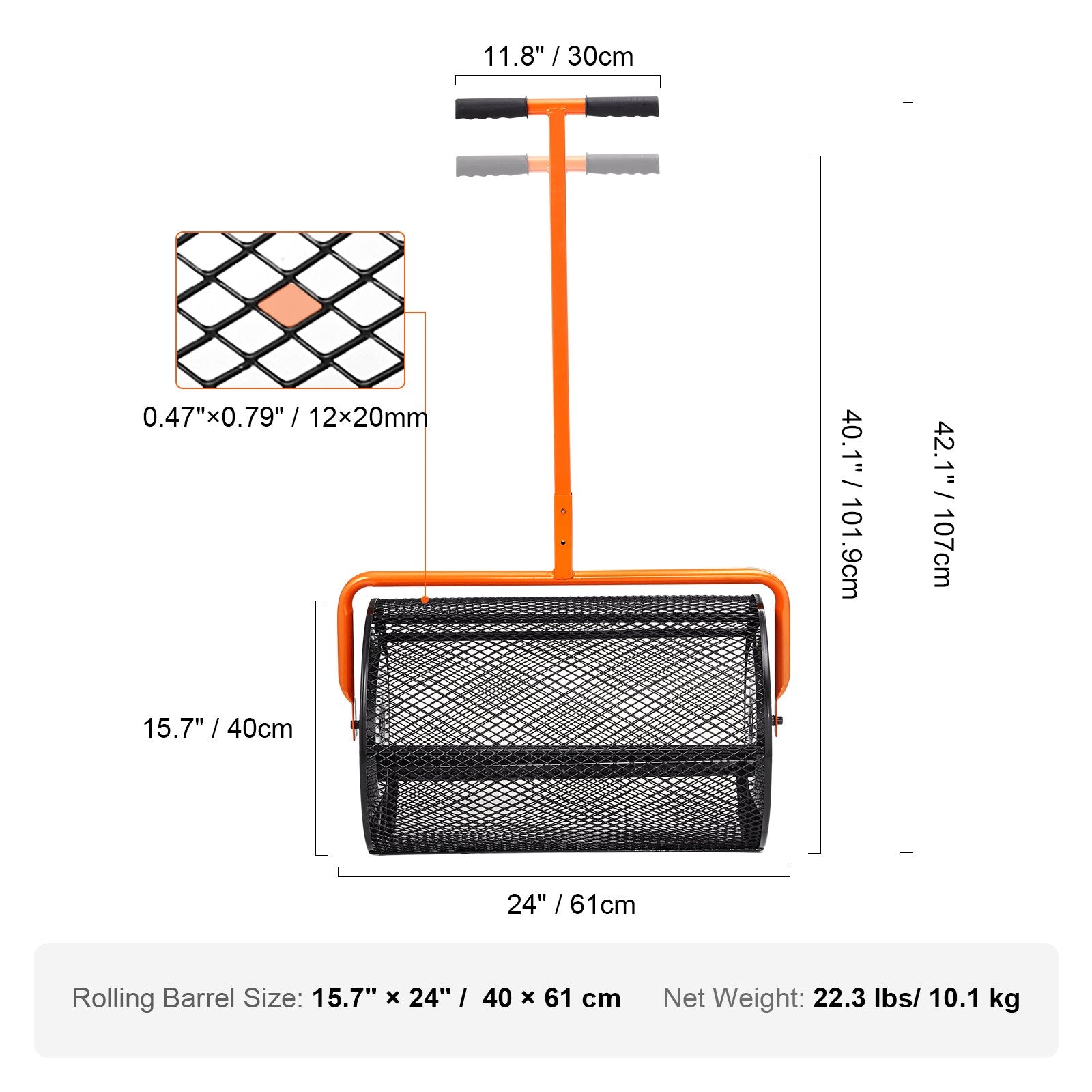 - Spreads Beautifully: This peat moss spreader is composed of powder-coated steel that is rust-proof and corrosion-proof, ensuring long-lasting use. It features a 24" steel basket, making it more time-saving and labor-saving than the traditional method, spreading your needed soil in no time.