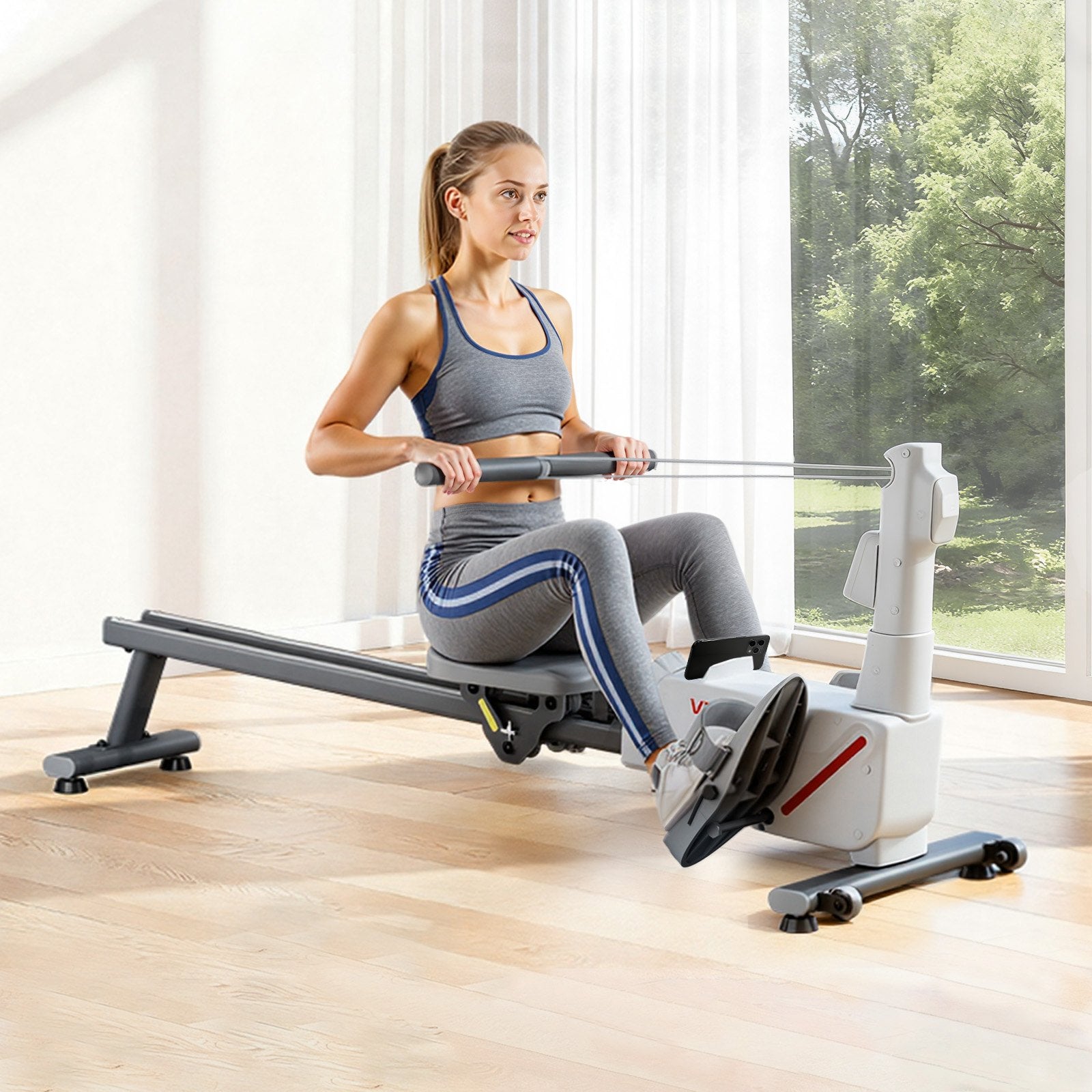 - Thoughtful Details, Comfy Rowing: The home gym rowing machine features dual-rail structure to ensures smooth, even rowing. Ergonomic seat and handles for max. comfort. HD LCD screen displays strokes, time, distance, and calories in real-time for workout tracking