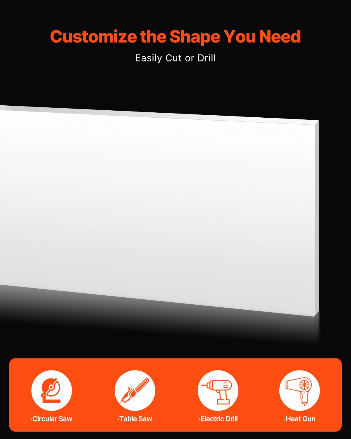 HDPE Plastic Sheet Board, 1 Pack High Density Polyethylene Sheet Plastic Panel, 24 x 48 Inch 1/2 Inch Thick Customizable Plastic Panels, for DIY Crafts, Heavy Duty Industrial Equipment, White