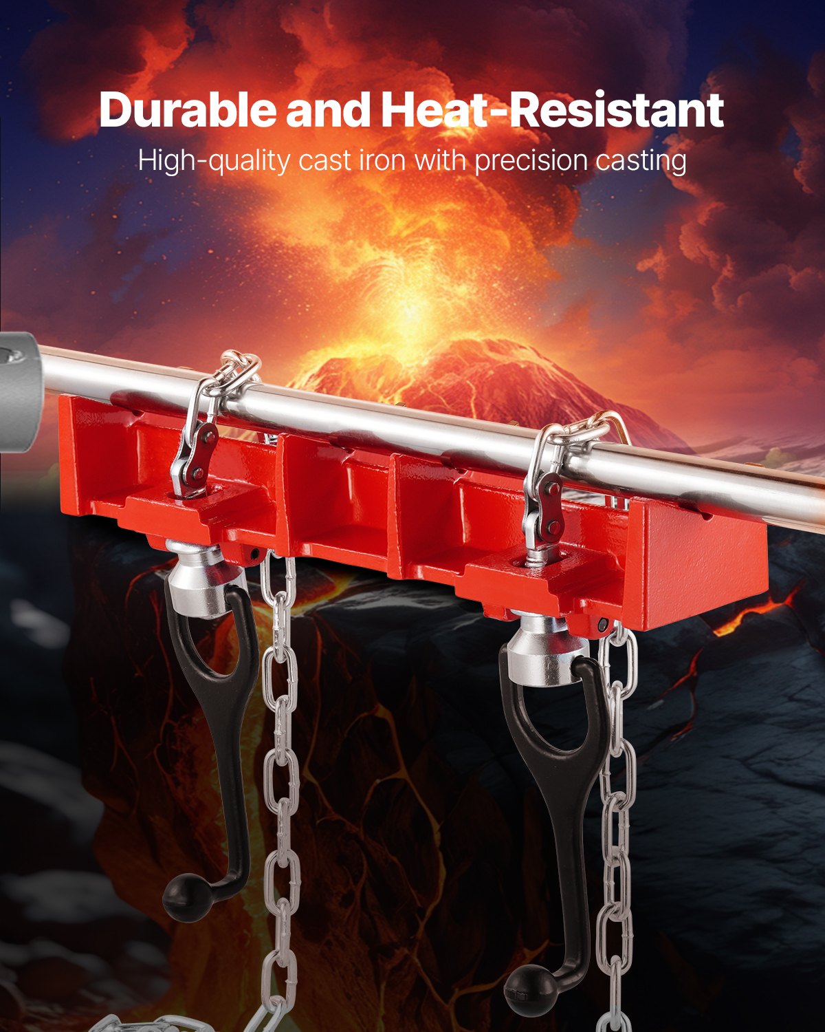 - Stable Pipe Clamping: Our pipe welding vise is equipped with dual chains (43.7-inch) and dual crank handles, evenly distributing the clamping force with great stability, while also reducing the risk of pipe deformation or damage.