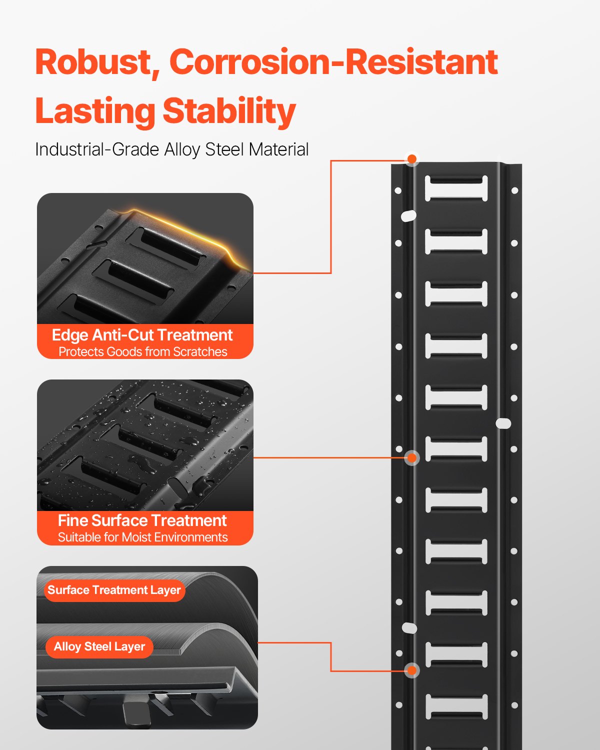 - Built Tough: Crafted from industrial-grade solid steel with a fine powder coating, these E-track tie-down rails are built to last. No rust, no corrosion – just reliable performance. This material and surface treatment promise a long service life, even in harsh, damp environments, without worrying about quality issues.