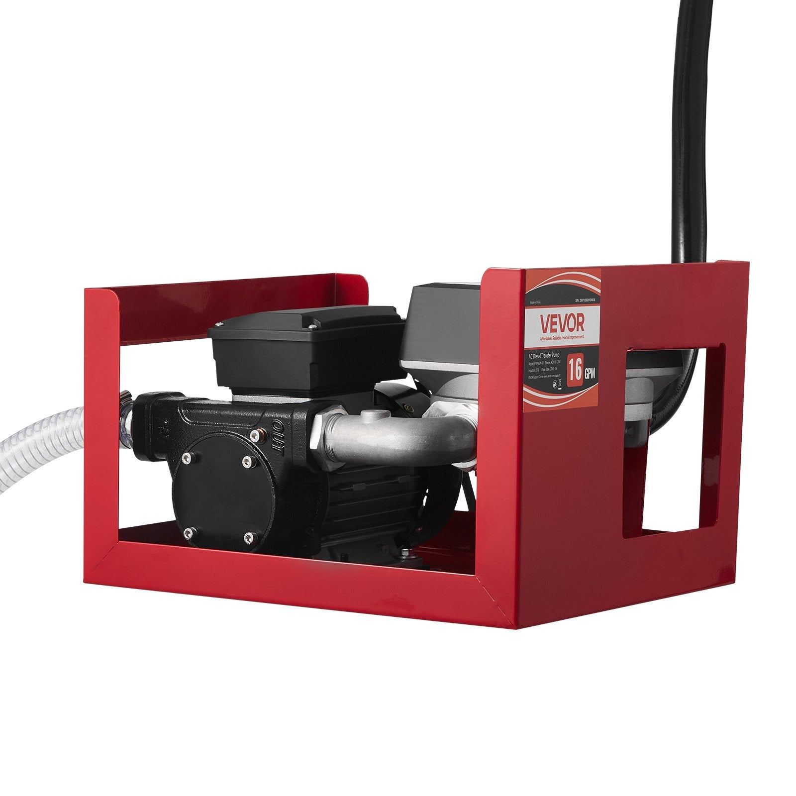 Fuel Transfer Pump 230V, 16 GPM 60 L/min, AC Electric Oil Transfer Pump for Diesel Kerosene Biodiesel, with Meter, Auto Fuel Nozzle & 2 Hoses, 45 ft/13.7 m Lift, for Vehicles, Construction Sites