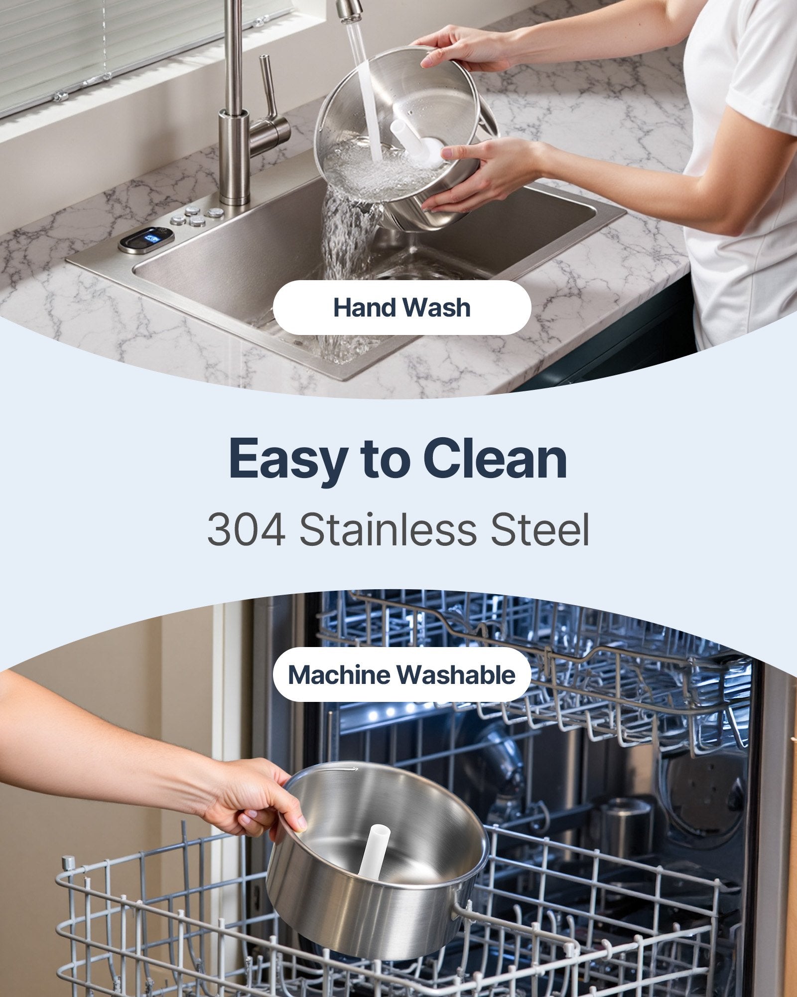 - Ease of Cleaning: All the making components (spray, mixing blade, top cover) are detachable, allowing for individual cleaning. The exterior of the automatic ice cream maker is made of matte SUS430 material, making it easy to wipe clean after use.
