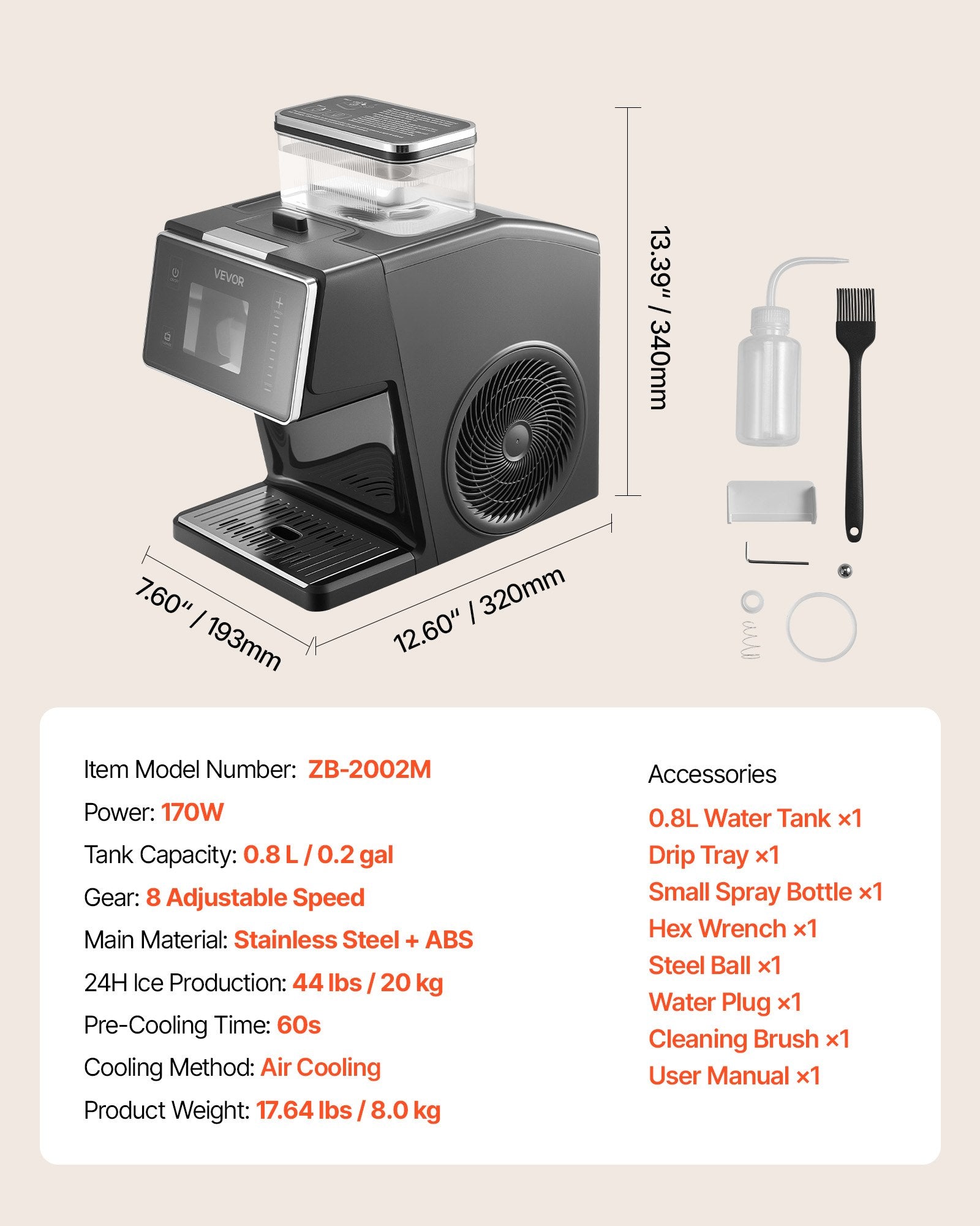 - Tank Capacity: 0.8 L / 0.2 gal