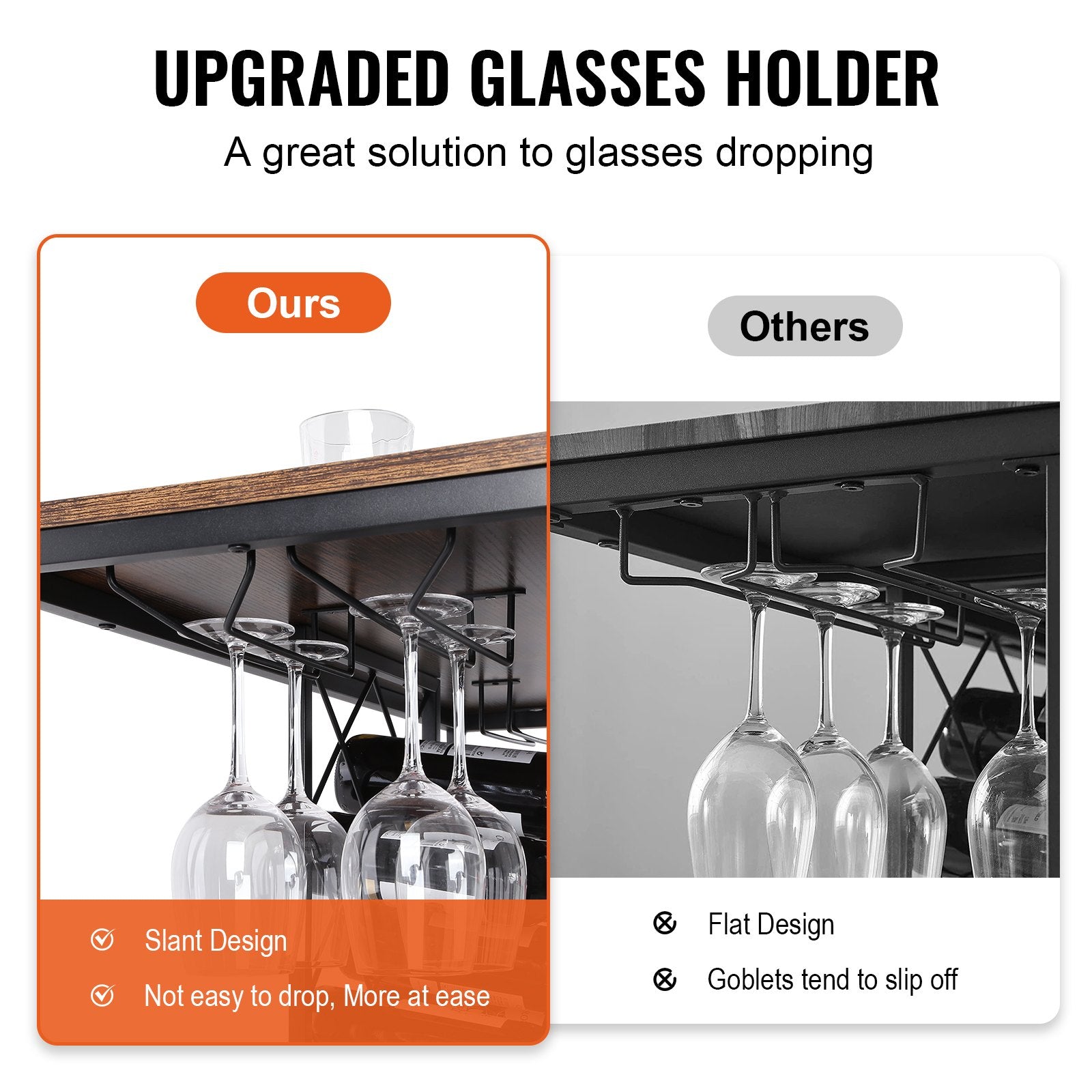 - Wine Glass Holder: Compared with others’ glasses holder, our wine bar cabinet has a unique slanted entrance for the glass holder, which sets it apart from other models. With this design, your glasses won't slip off easily when you reach for them.