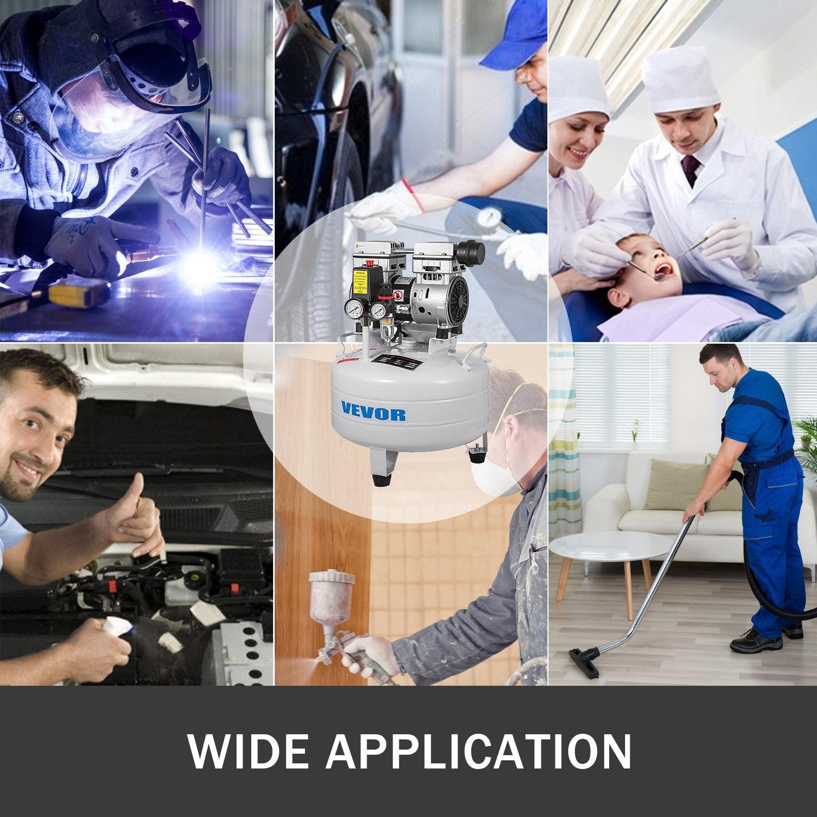 Vertical Air Compressor 6.6 Gallon Ultra Quiet Oil-Free Air Compressor 30L Tank Silent Air Compressor 850W Oil Free Compressor Low Noise