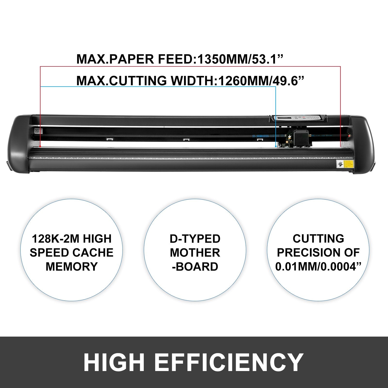 - 【CUTTING CAPACITY】- 53-inch vinyl cutter with maximum paper feed of 1350mm(53.1"), maximum cutting width of 1260mm(49.6"), cutting precision of +/-0.01mm(0.0004"), and paper feed precision of 3m(118").