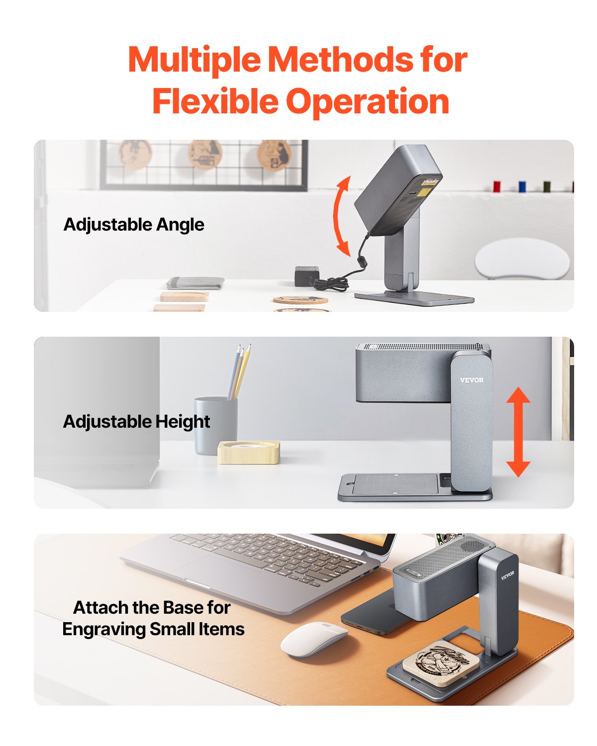 - Flexible Adjustment: This high speed portable engraving machine allows adjustable angle and height. The base can be detached for engraving large objects, or attached for precise engraving of small items. Its versatility and convenience suit any engraving work.
