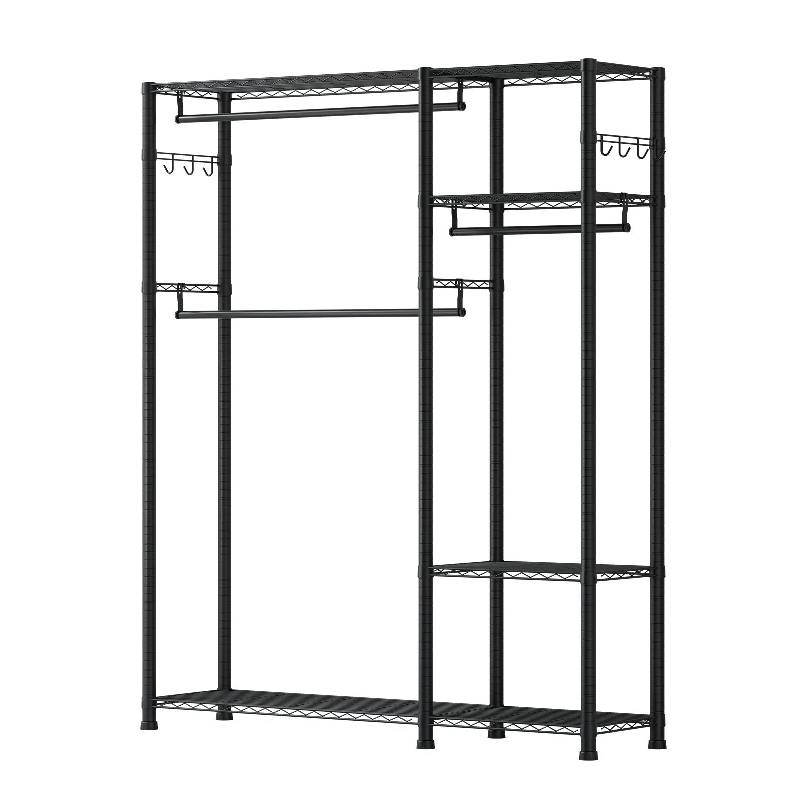 Clothing Garment Rack, Heavy Duty Clothes Rack, 6 Adjustable Tiers Clothes Racks with Steel Frame, 363 kg Load Capacity Closet Wardrobe with 3 Hanging Rods for Bedroom, Clothing Store, Hallway