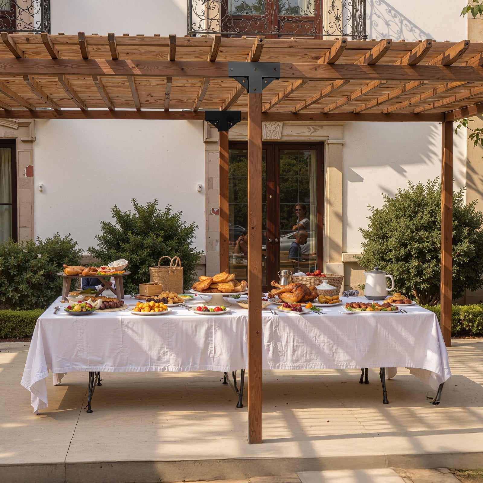 - Shade Sail Attachment Holes: These pergola brackets feature built-in holes for attaching a shade sail to block direct sunlight and provide rain protection. The easy-detach design also simplifies cleaning and maintenance, keeping your patio neat and tidy