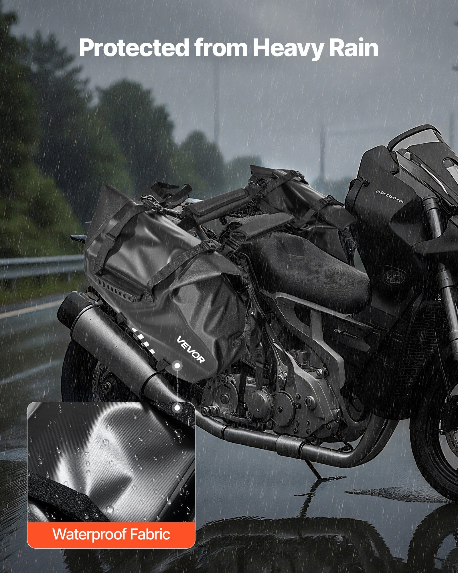 - Durable & Waterproof: Built for long journeys, this saddle bag features a PVC coating for complete waterproof and dustproof protection. It is easy to clean and keeps gear dry. A waterproof rain cover is included for heavy rain conditions