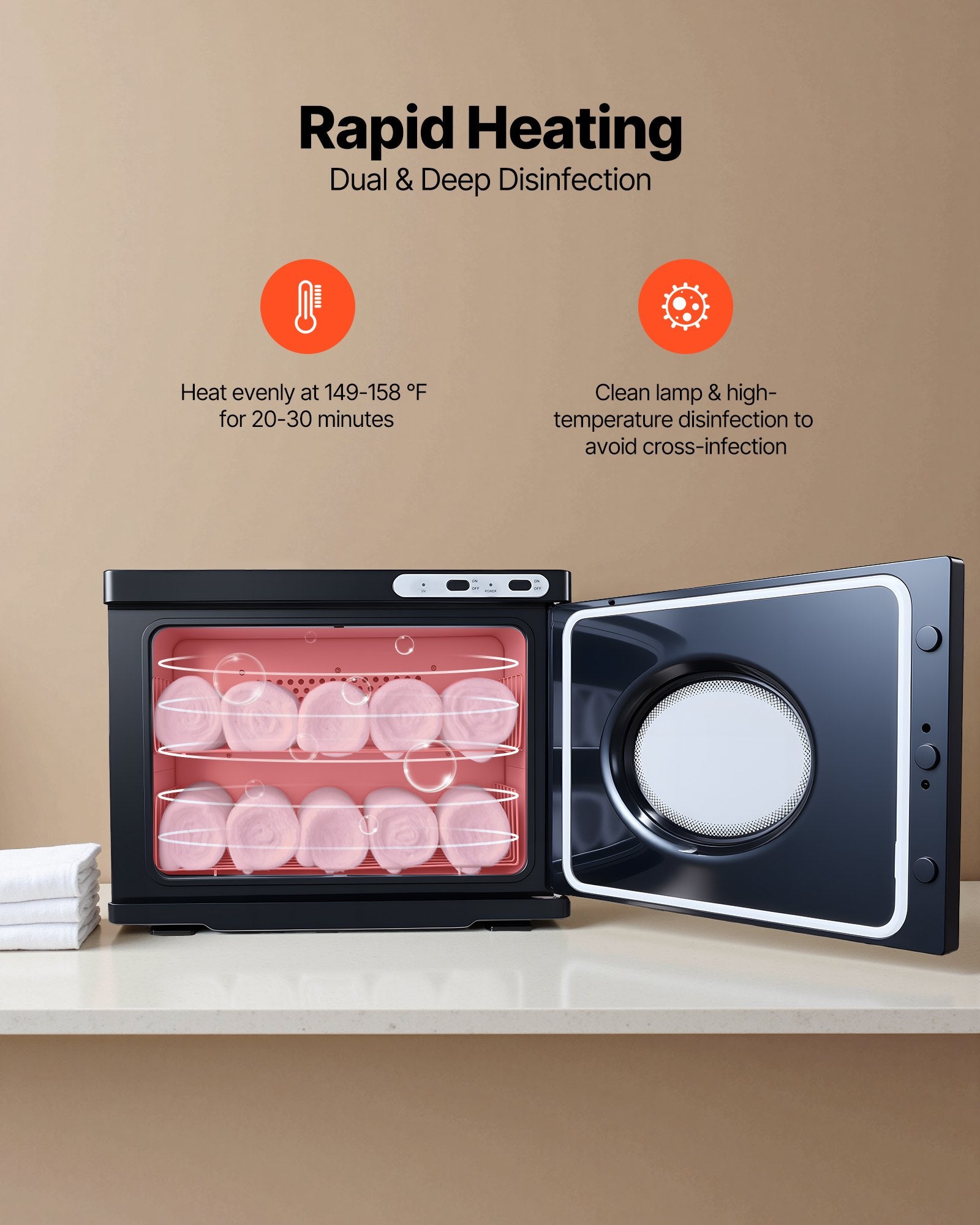 - Efficient Disinfection: This hot towel warmer has a steam heating function (heats up to 80°C quickly in 5 minutes), with a clean lamp disinfection for deep cleaning. 360° thermal radiation heating ensures even heating without dead corners