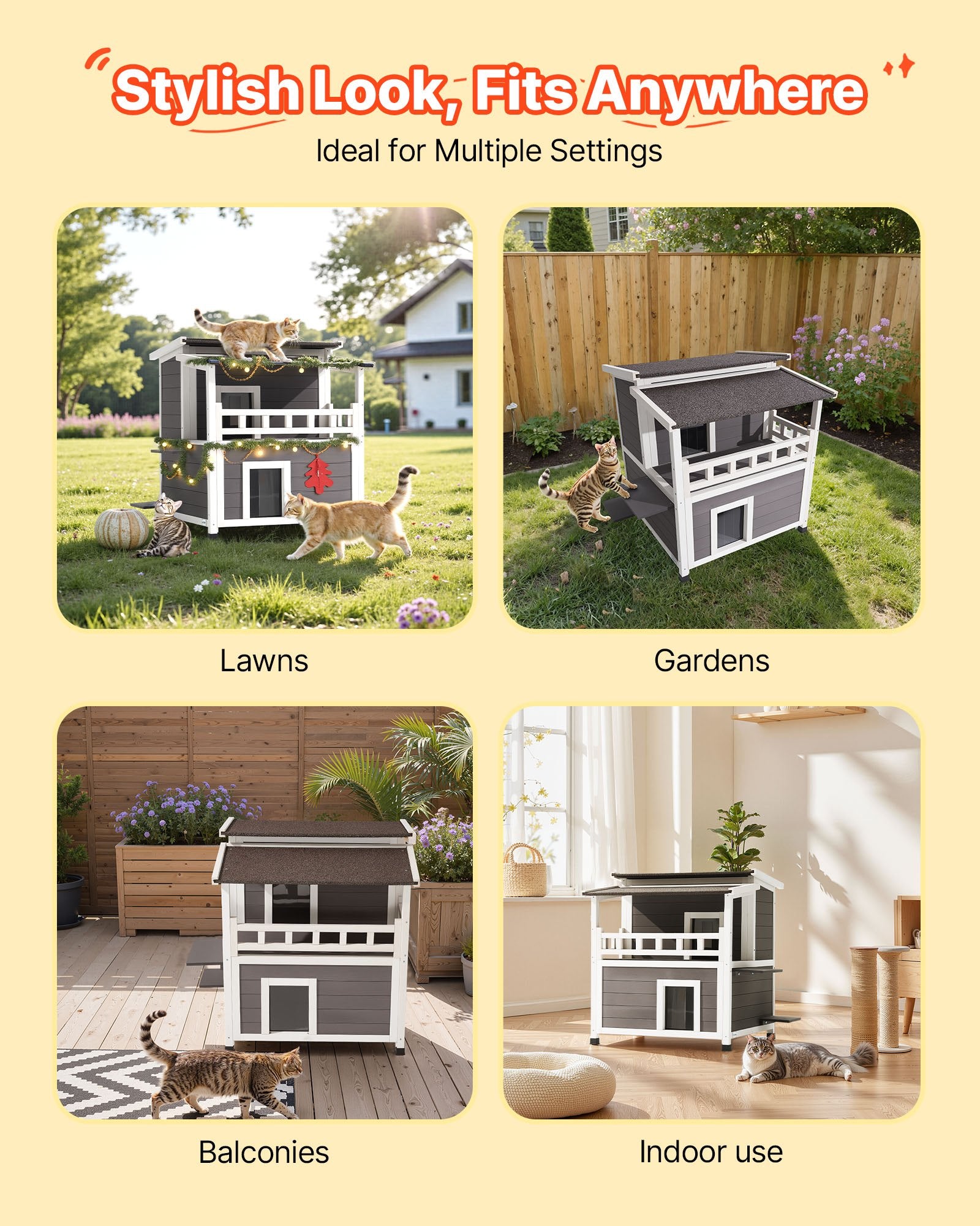 - Two-Story Cat House: The first floor provides a private resting area, while the second floor offers a higher vantage point and reduces conflicts between multiple cats. This layered design enhances security and comfort.