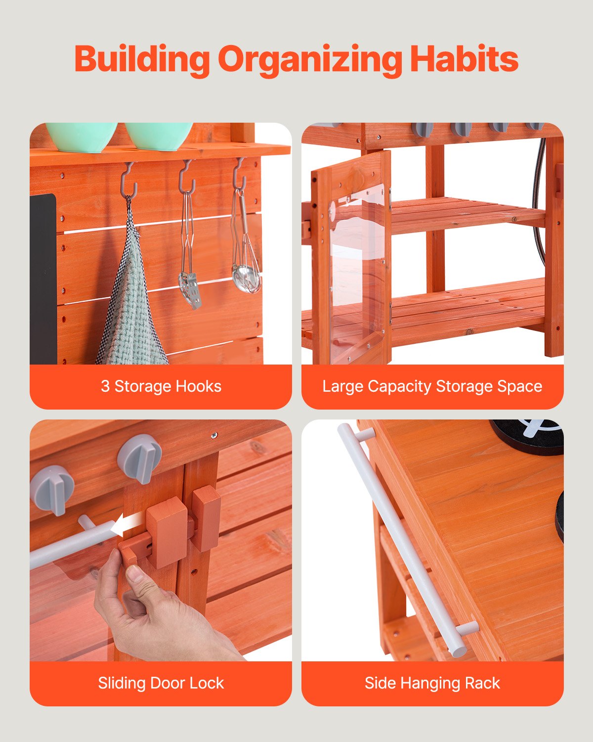 - A Fun Developmental Gift: This pretend play outdoor kitchen is perfect for birthdays or holiday gifts for children, whether for boys or girls! With a 20.47-inch countertop height, kids can easily reach and organize their play items, helping improve hand-eye coordination. The spacious work area allows children to play with friends, explore the joys of nature outdoors, and improve collaboration and social skills