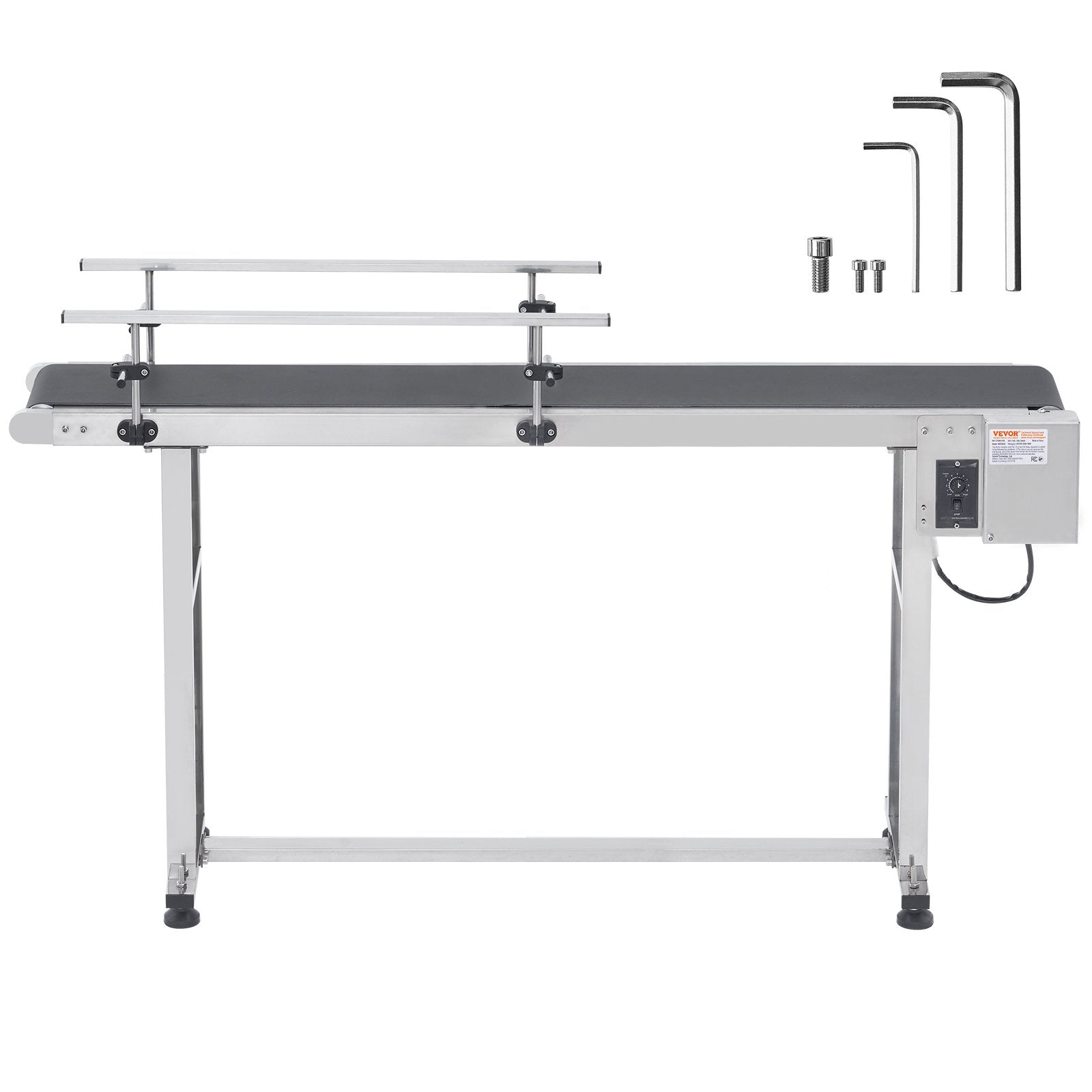 Belt Conveyor, 59 x 15.7 inch Conveyor Table, Heavy Duty Stainless Steel Motorized Belt Conveyor for Inkjet Coding Applications Powered PVC Belt Anti-Static Adjustable Speed (Double Guardrail)