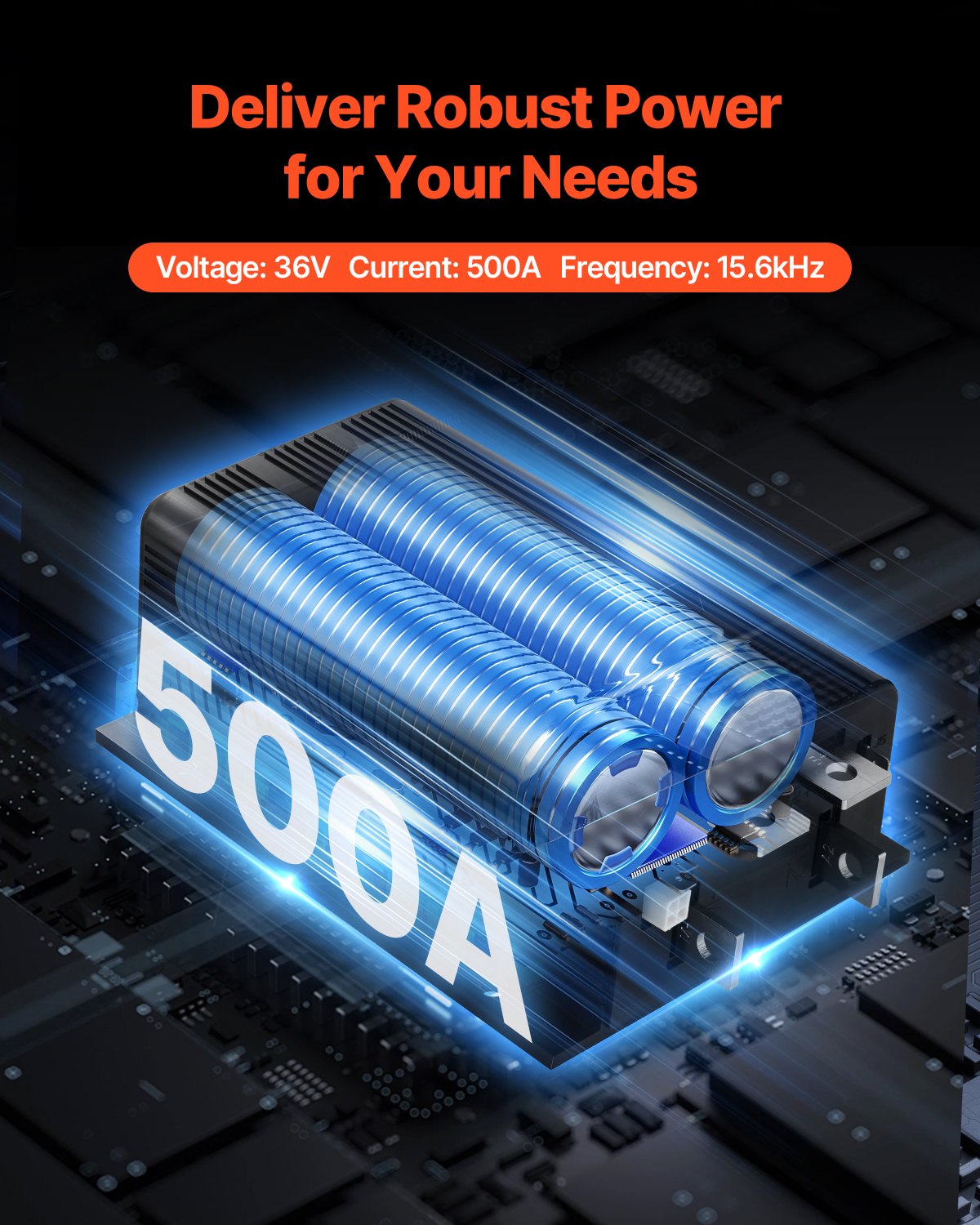 - Stable Performance: With 36V and 500A output, this golf cart motor controller delivers smooth, steady power to the motor. The 15.6kHz high-frequency regulation and quick start function enhance efficiency and responsive acceleration. It supports stepless speed adjustment and reverse braking for precise and seamless driving